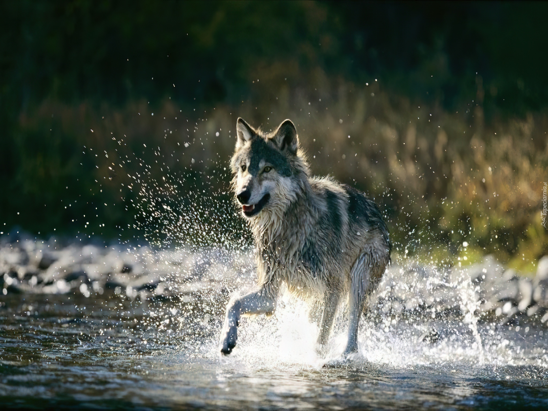 Edytor tapety: Mokry, Wilk, Rzeka