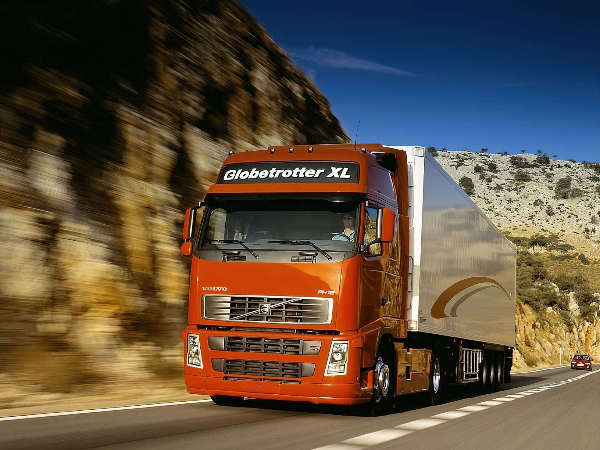 Edytor tapety: Pomarańczowa Ciężarówka Volvo