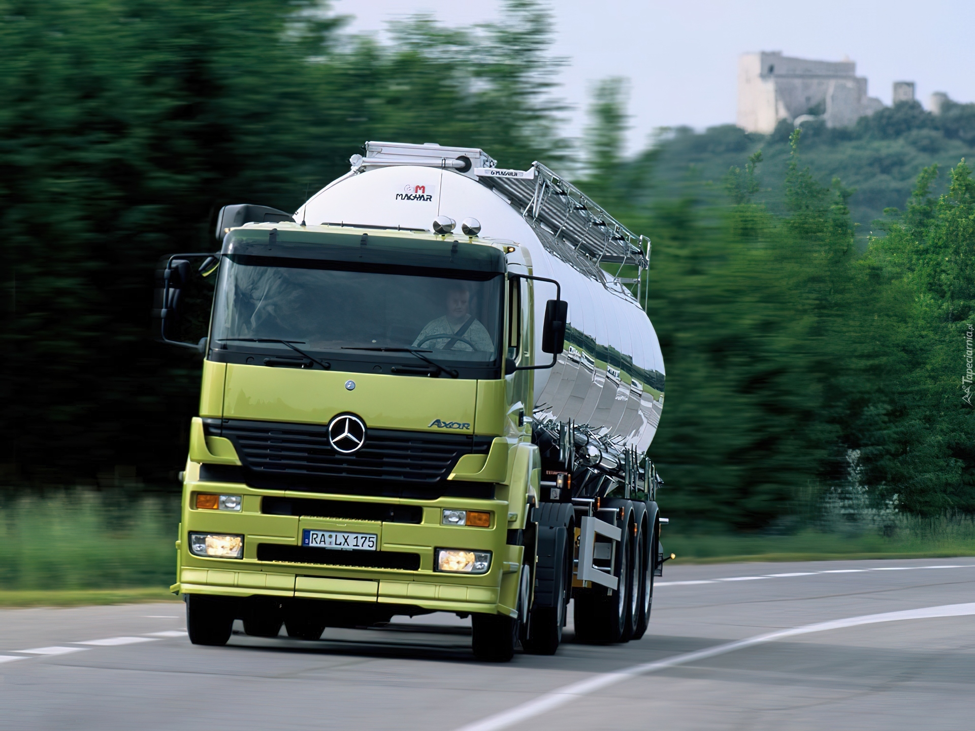 Edytor tapety: Ciągnik Mercedes, Ciągnik i Cysterna