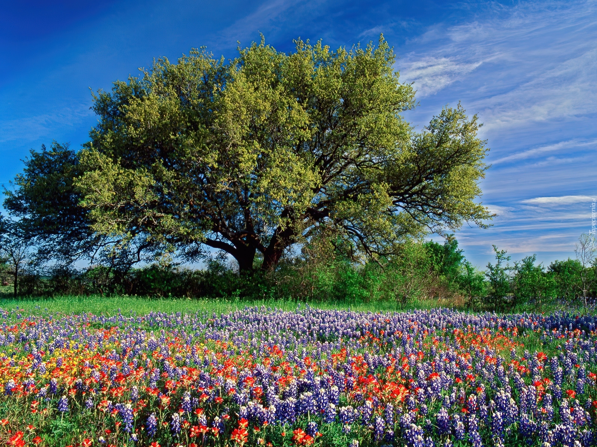 Edytor tapety: Dąb, Teksas, Wiosna, Kwiaty
