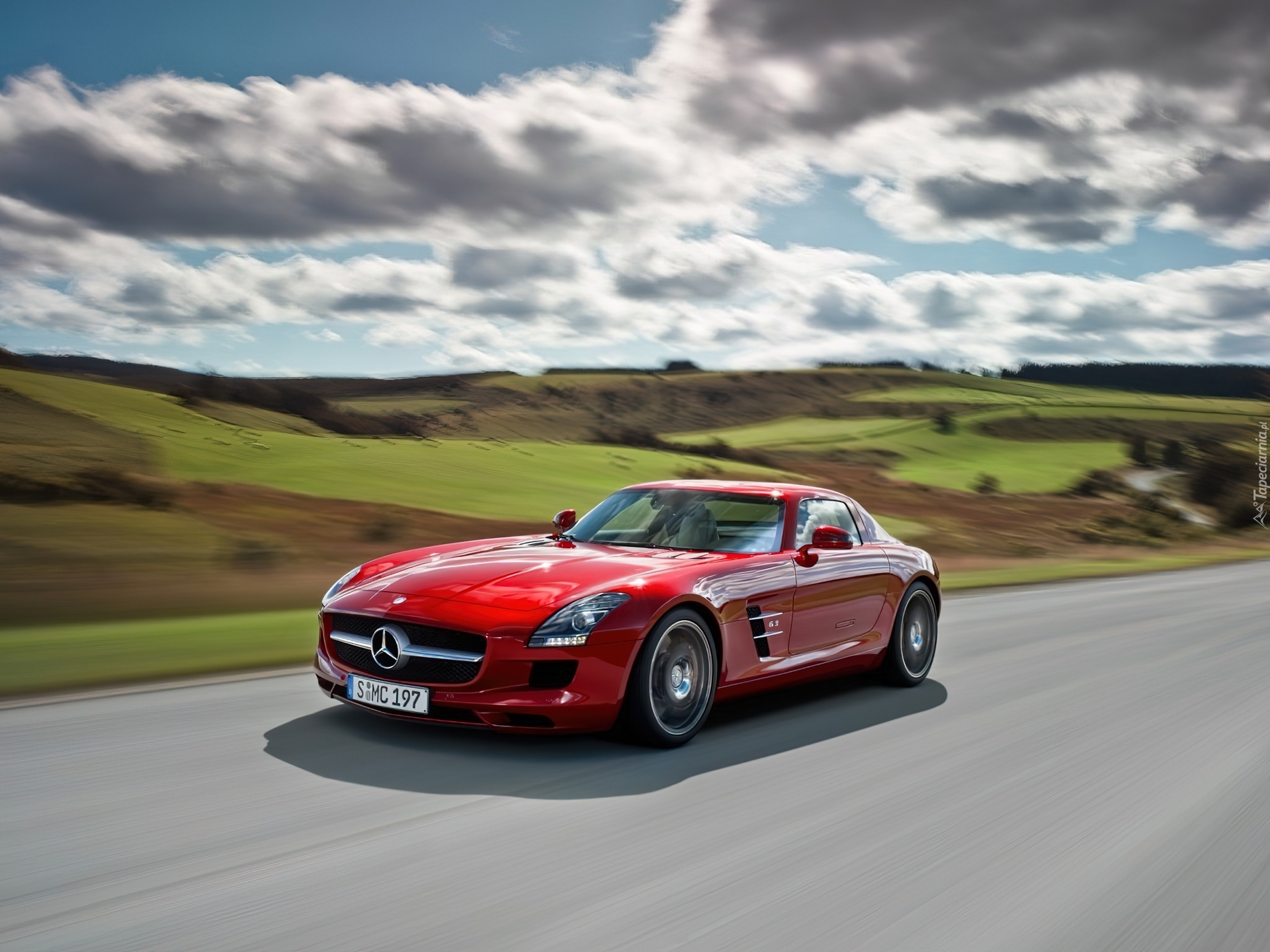 Edytor tapety: Czerwony, Mercedes Benz SLS, AMG, Droga