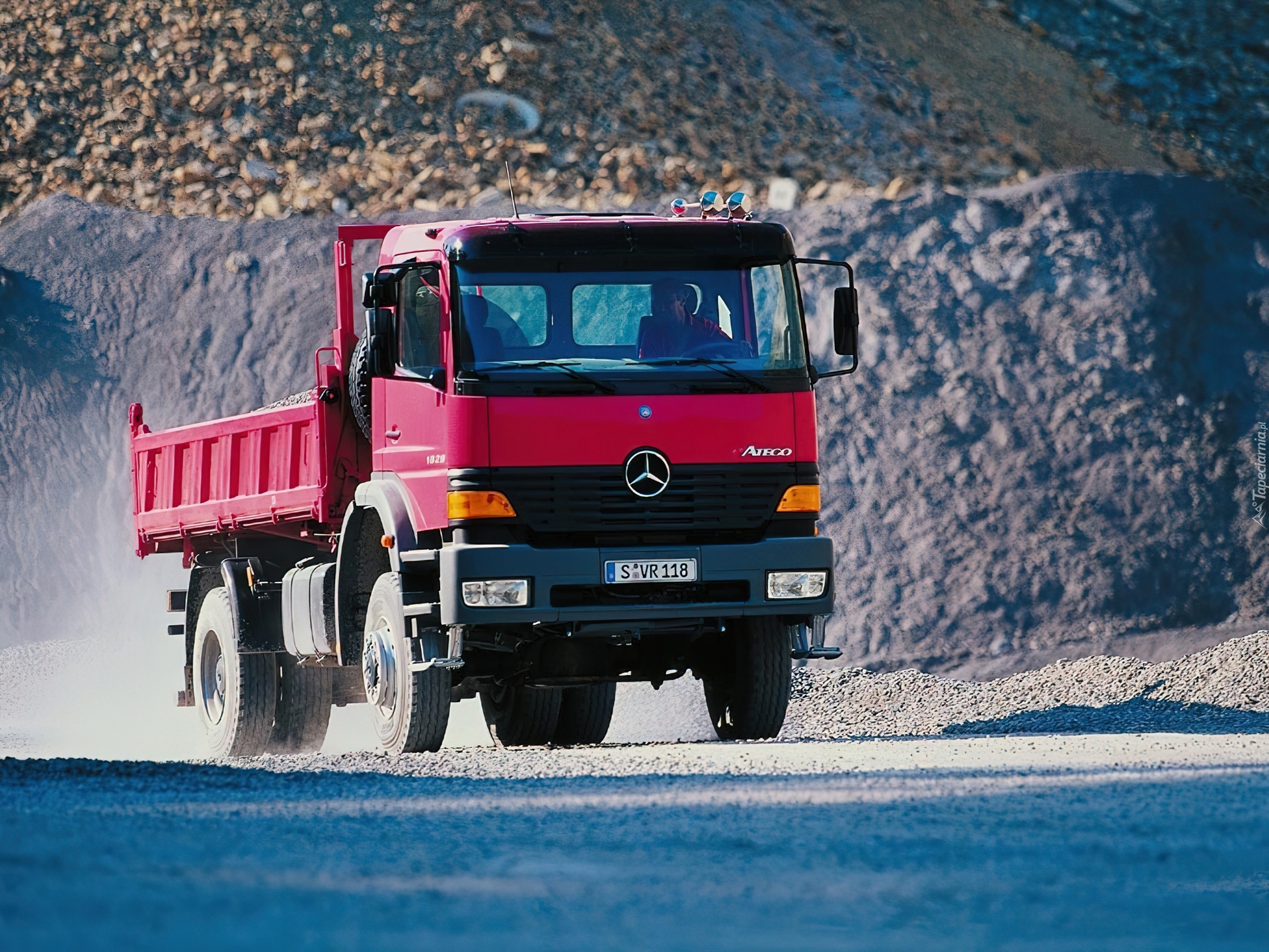 Edytor tapety: Czerwona Ciężarówka Mercedesa