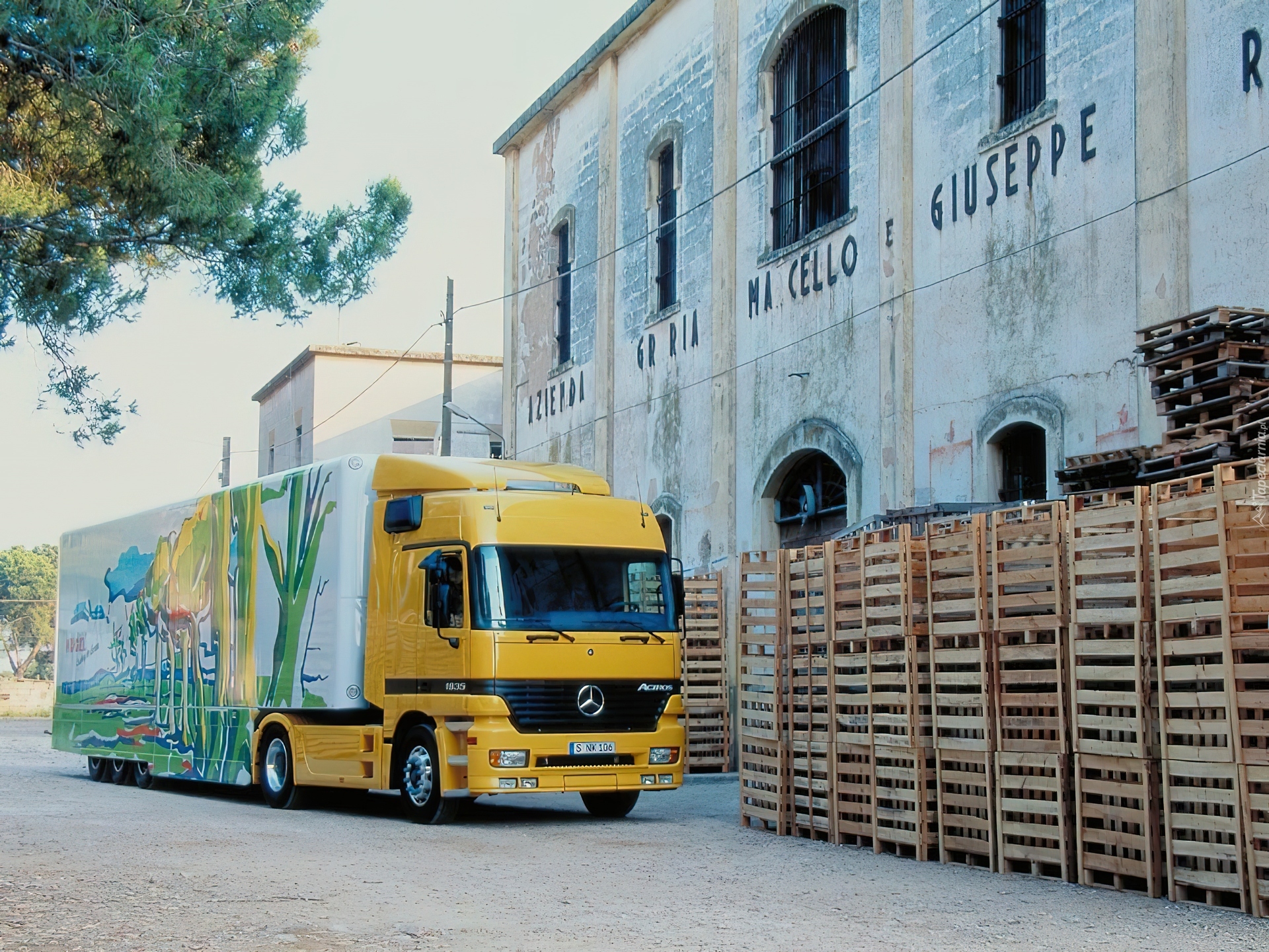 Edytor tapety: Żółty Ciągnik Mercedes