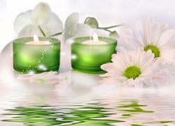 Edytor tapety: Świeczki, Kwiatki, Margerytki, Tafla, Wody