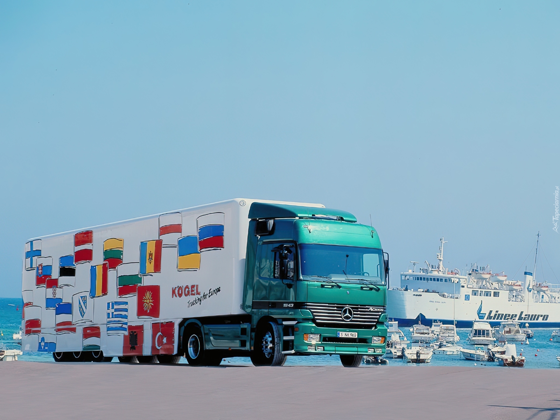 Edytor tapety: Zielony Ciągnik Mercedes, Przyczepa