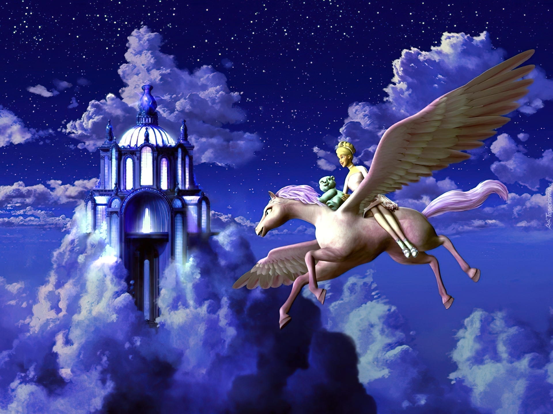 Edytor tapety: Film animowany, Barbie i magia pegaza, Barbie and the Magic of Pegasus, Noc, Pegaz