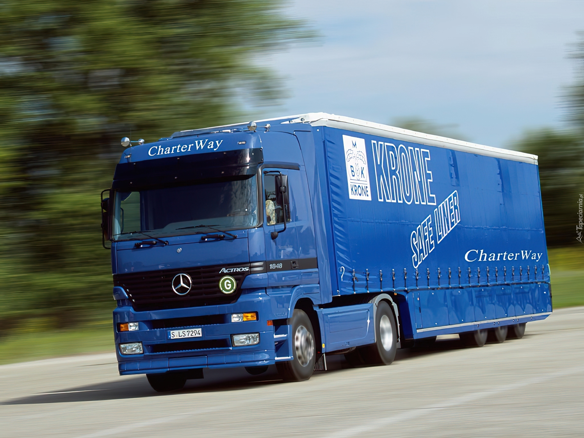 Edytor tapety: Niebieski Ciągnik i przyczepa Mercedesa