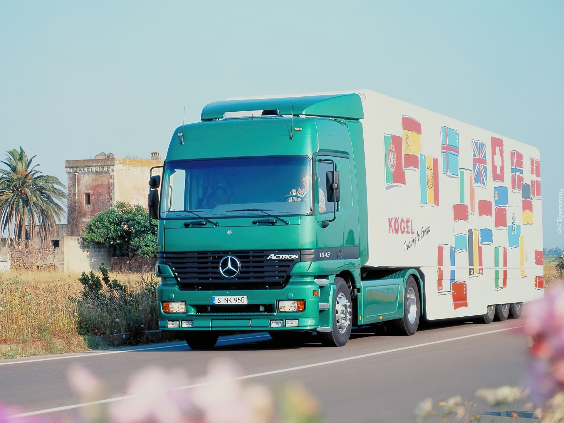 Edytor tapety: Ciągnik Mercedes, Ciągnik i Przyczepa