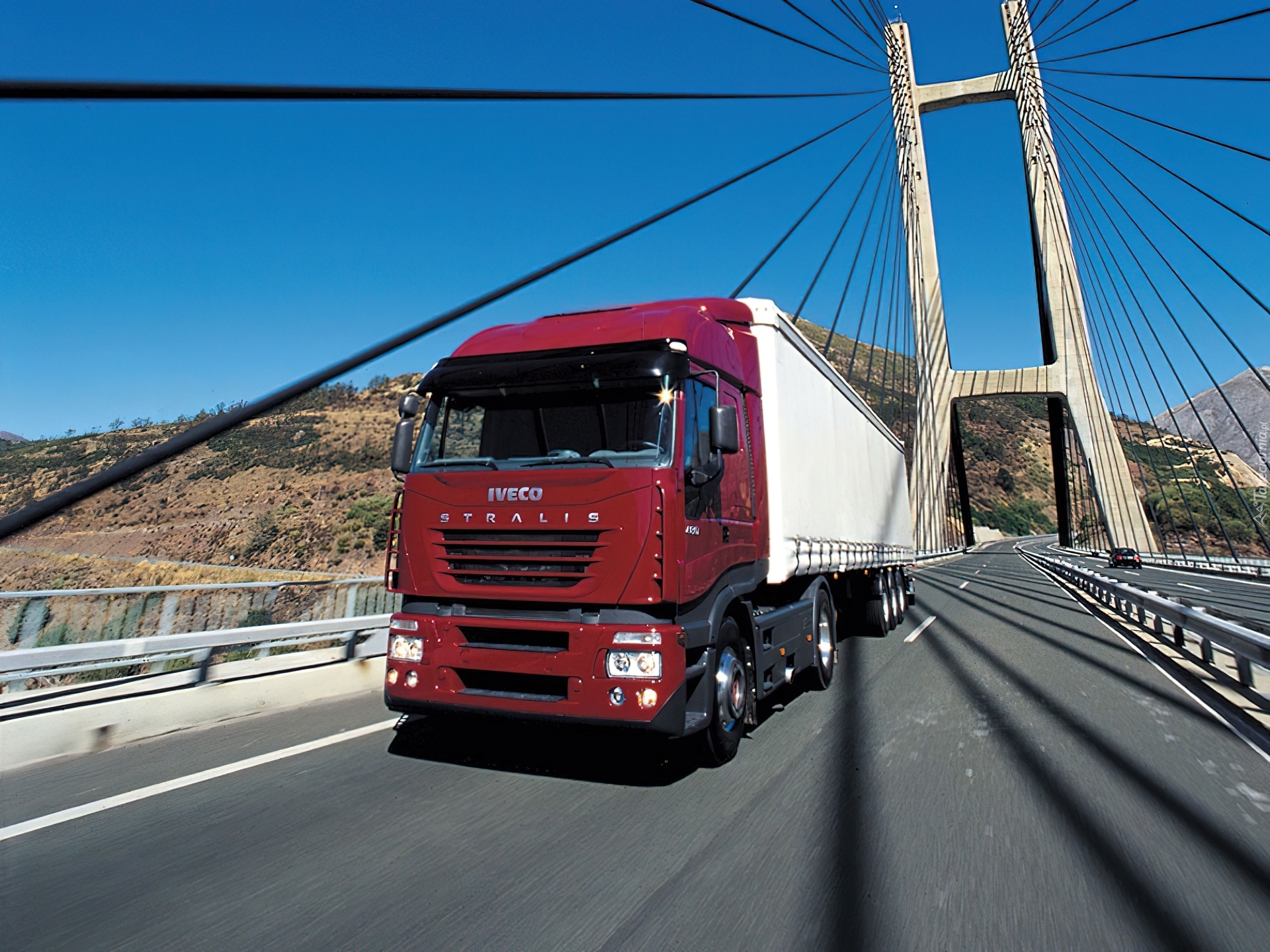 Edytor tapety: Czerwone Iveco, Biała Przyczepa