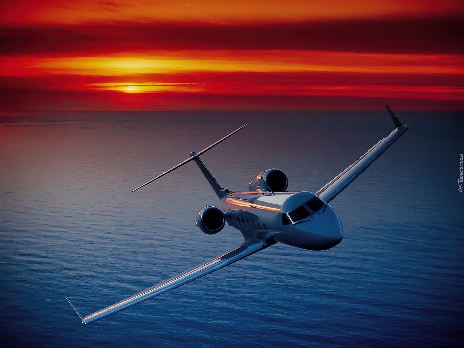 Edytor tapety: GulfStream G-300, Morze, Zachód, Słońca