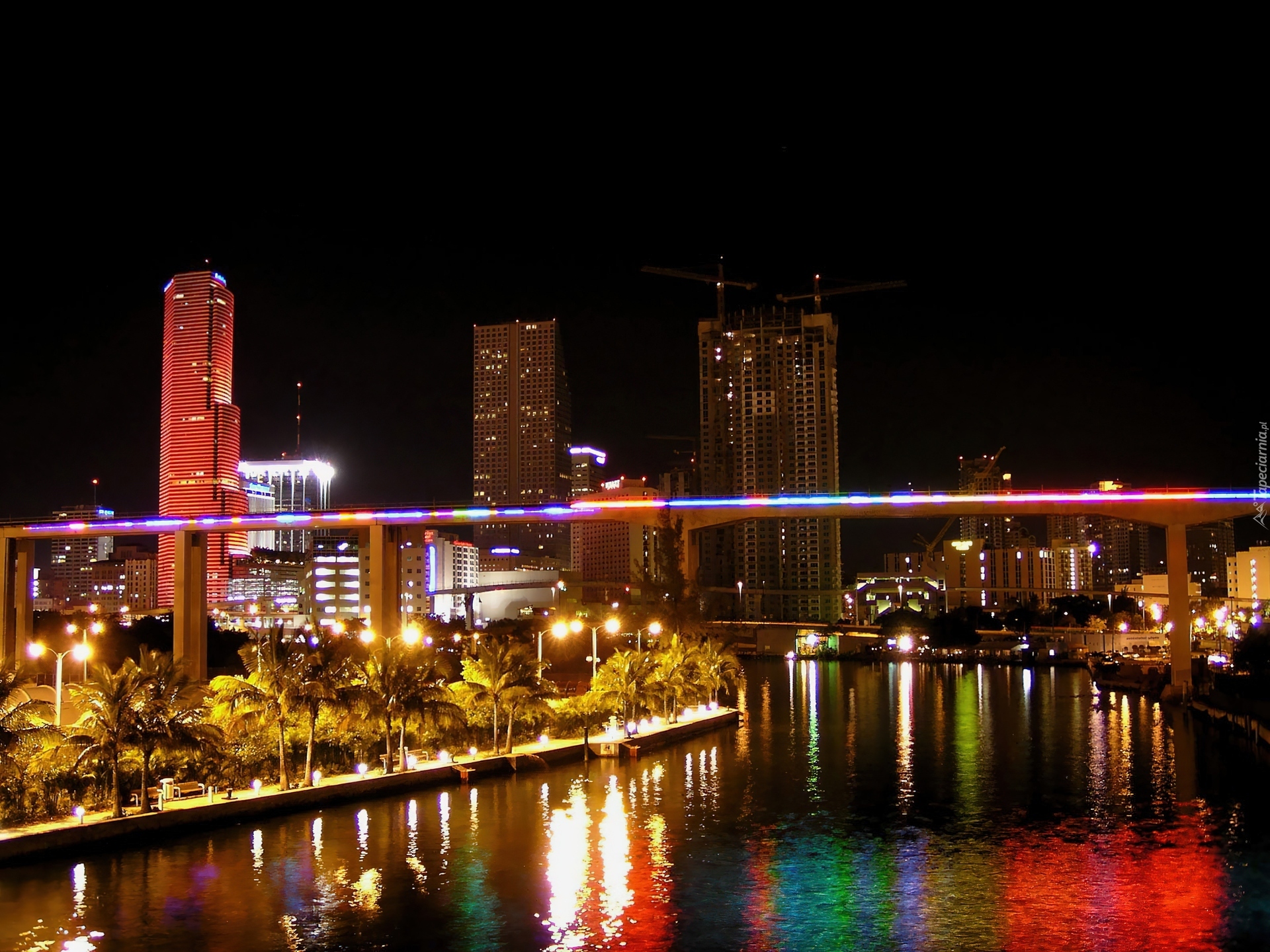 Edytor tapety: Miami, Centrum, Miasta, Światła, Nocą