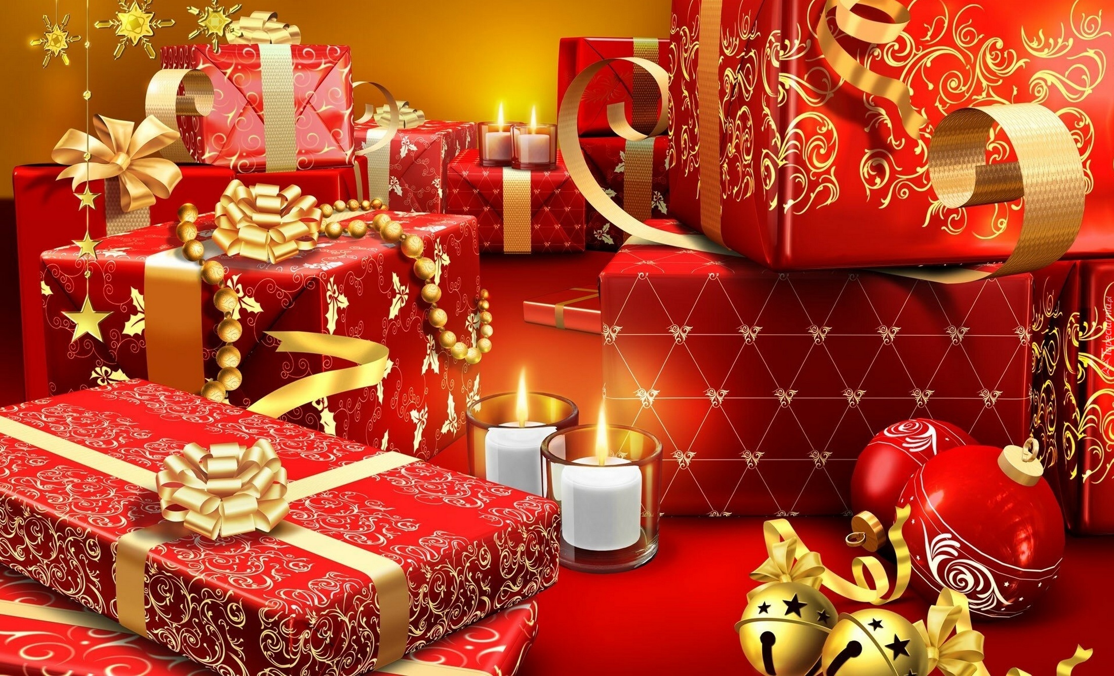 Edytor tapety: Prezenty, Bombki, Świeczki, Kompozycja