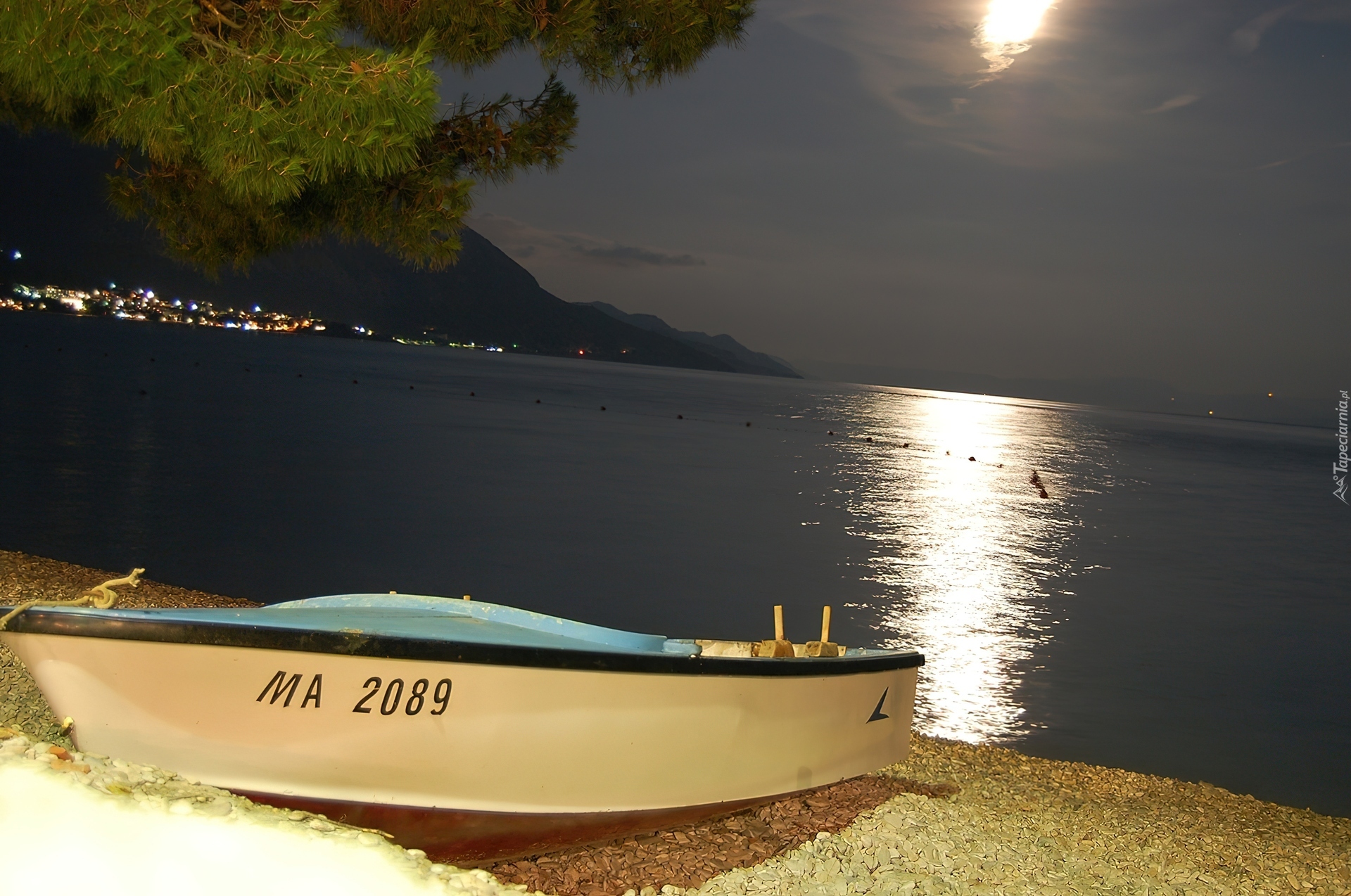 Edytor tapety: Plaża, Nocą, Chorwacja, Łódka