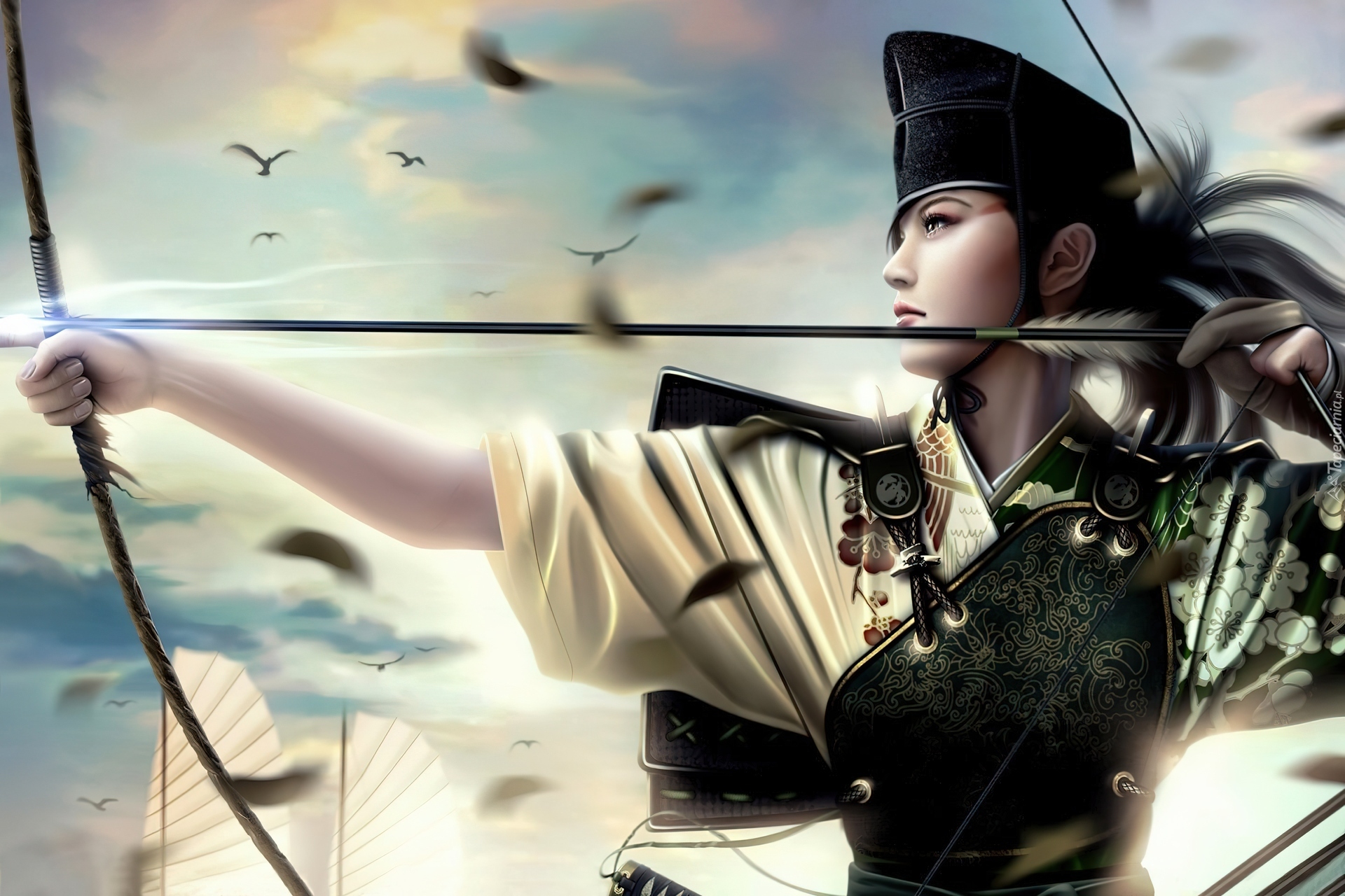 Edytor tapety: Kobieta, Wojowniczka, Łuk, Pióra