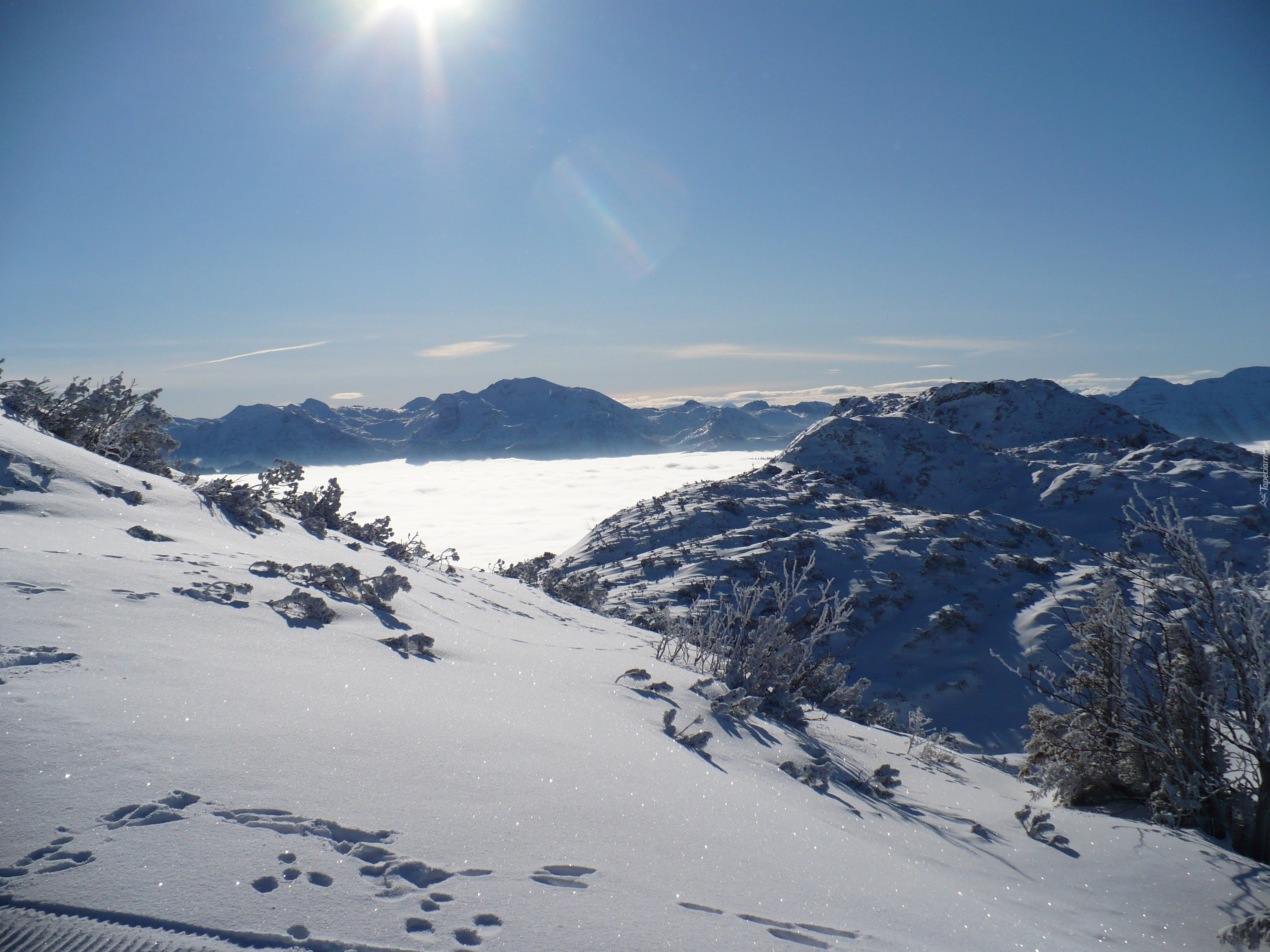 Edytor tapety: Alpy, Zima, Góry, Ślady, Na, Śniegu