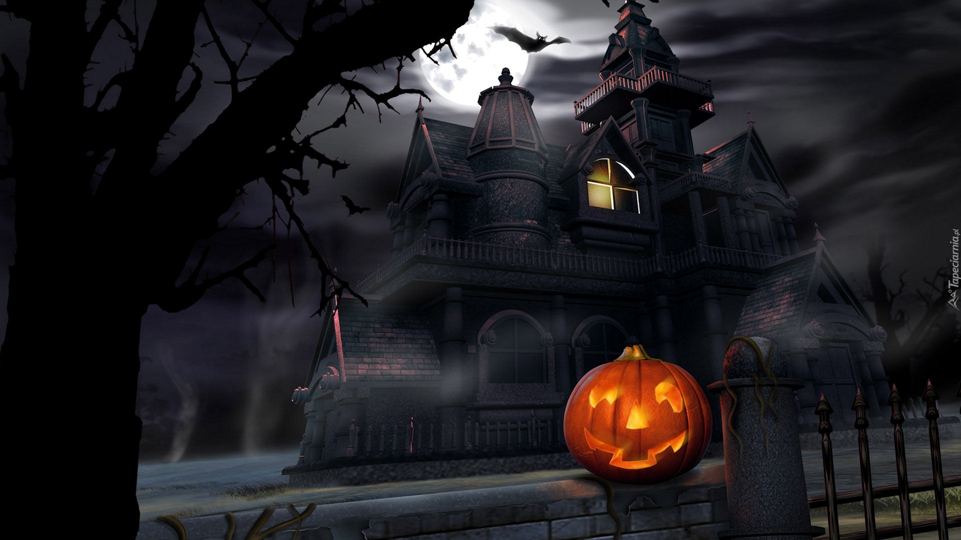 Edytor tapety: Stary, Dom, Nietoperz, Dynia