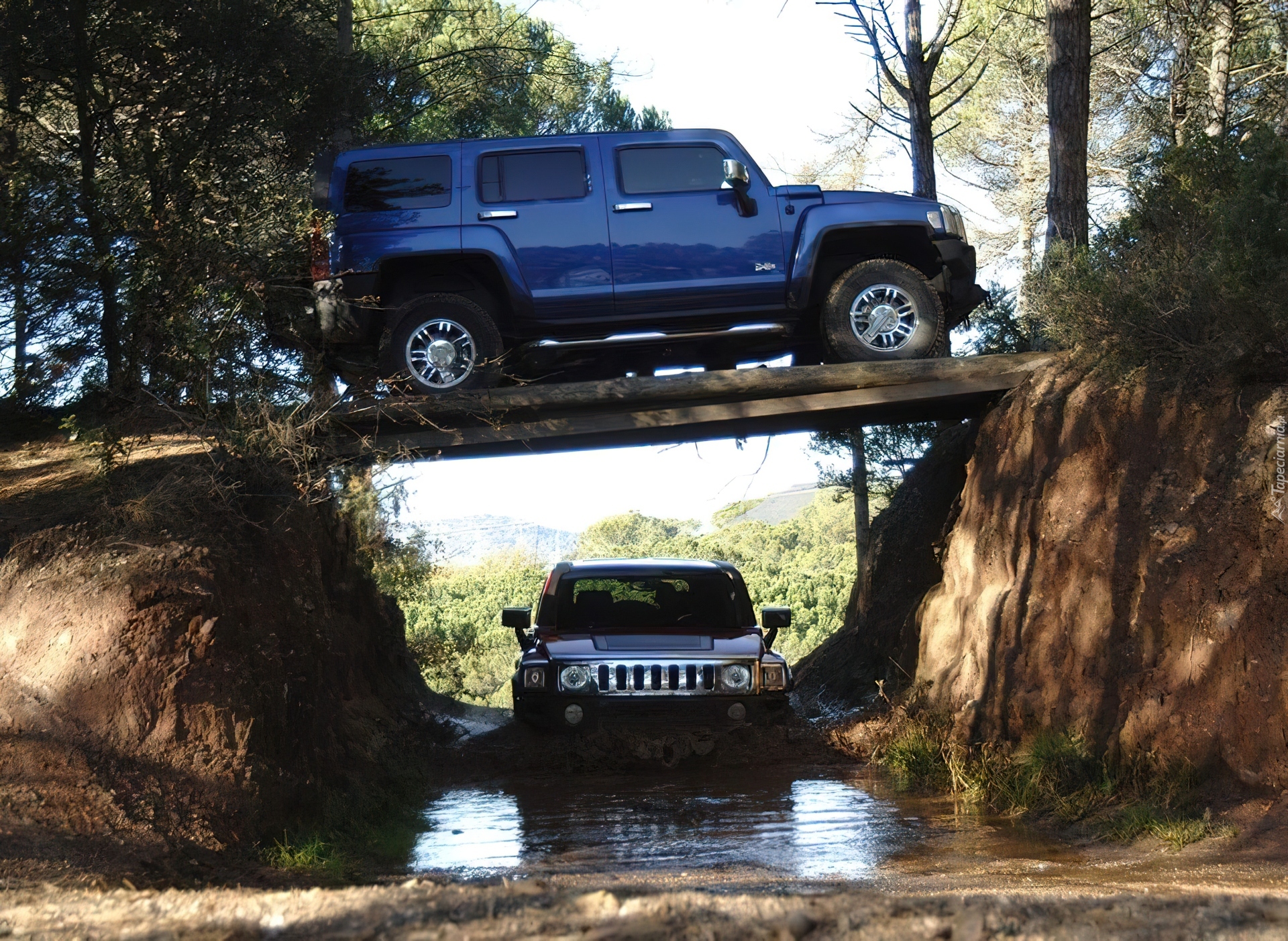 Edytor tapety: Hummer H3, Przeprawa, Kładka
