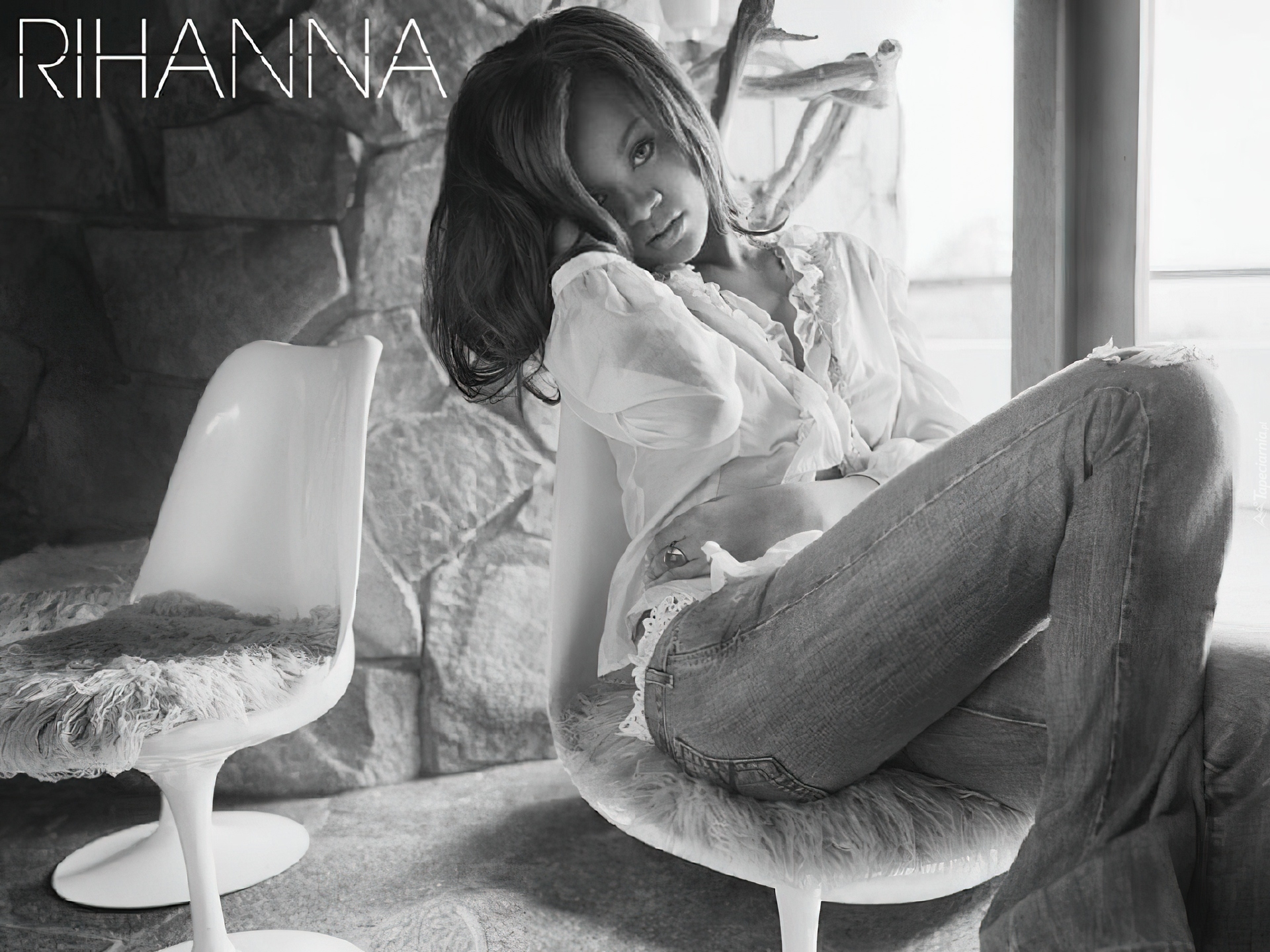 Edytor tapety: Rihanna, Czarno, Białe, Zdjęcie