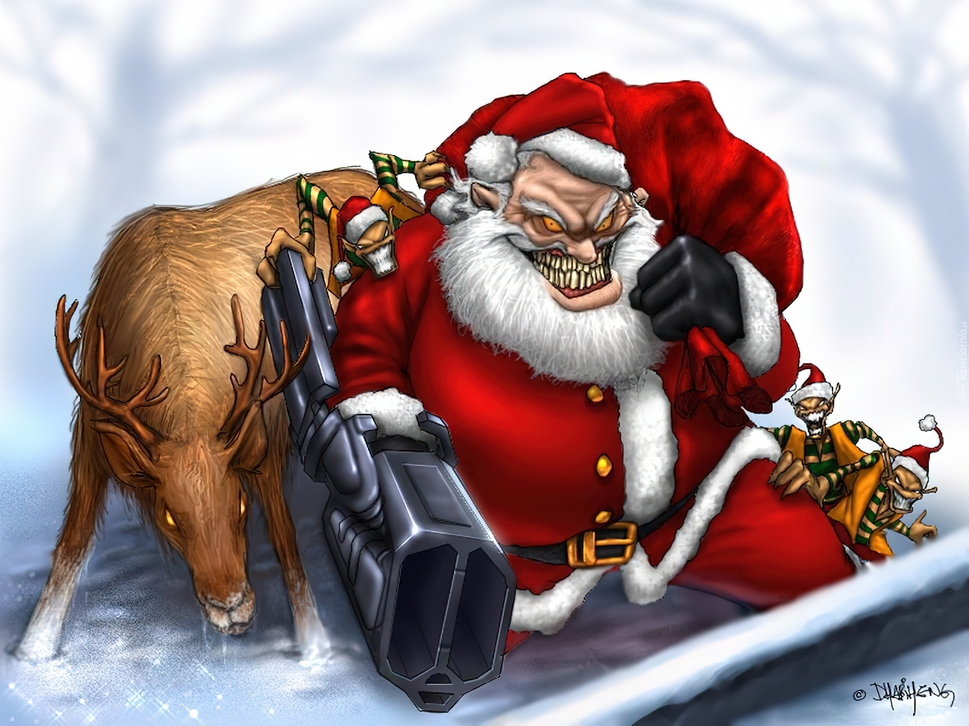 Edytor tapety: Groźny, Mikołaj, Wściekły, Renifer