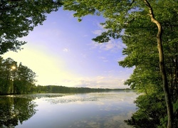 Edytor tapety: Leśne, Jezioro, Korony, Drzew