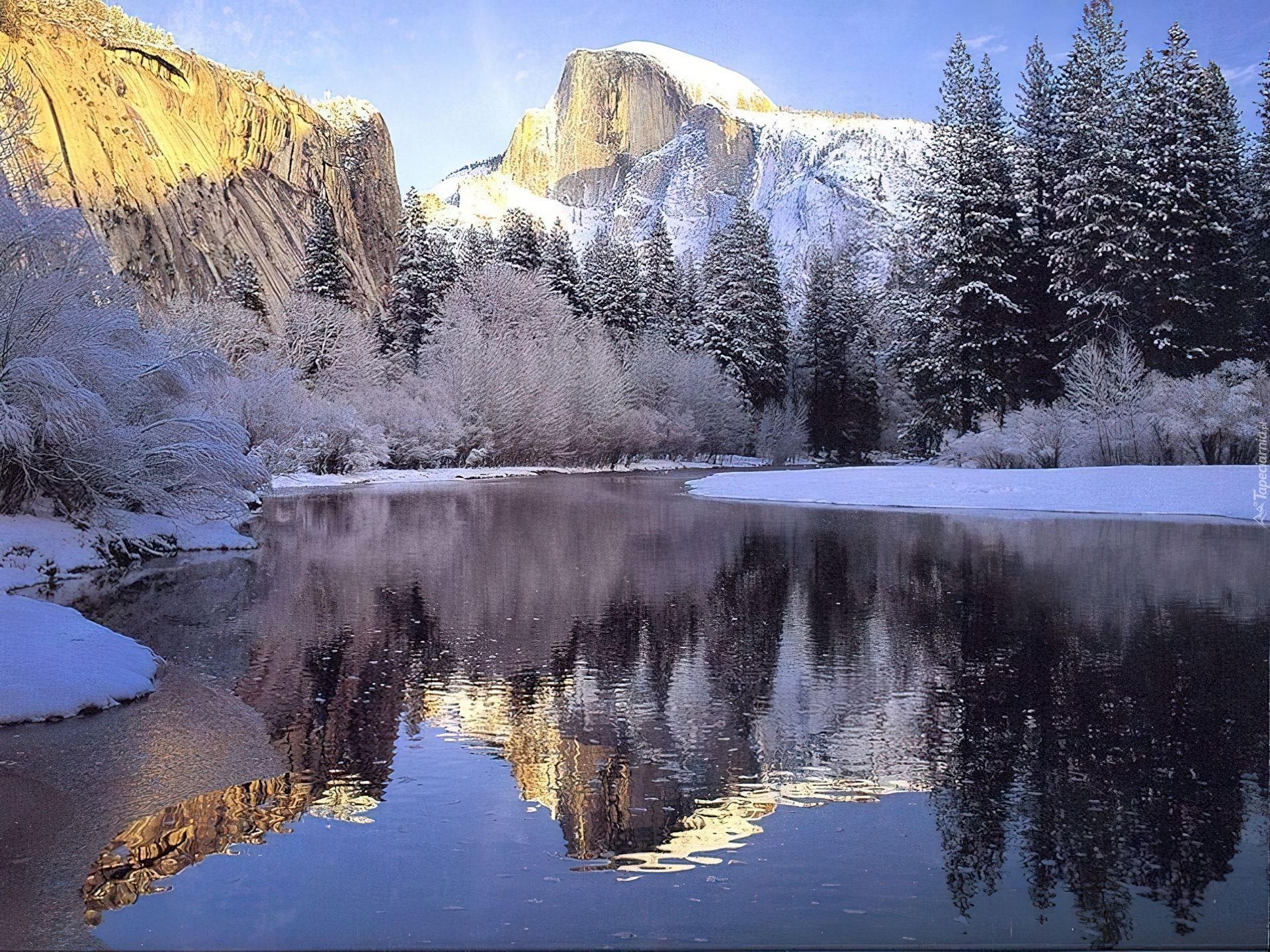 Edytor tapety: Rzeka, Śnieg, Góry