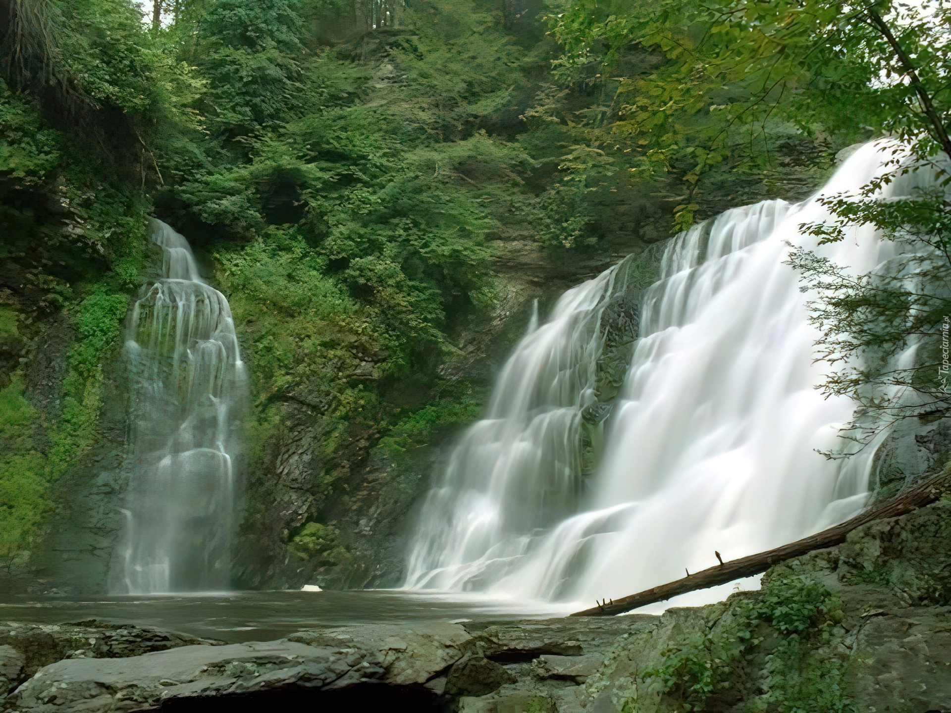 Edytor tapety: Wodospad, Las, Konar