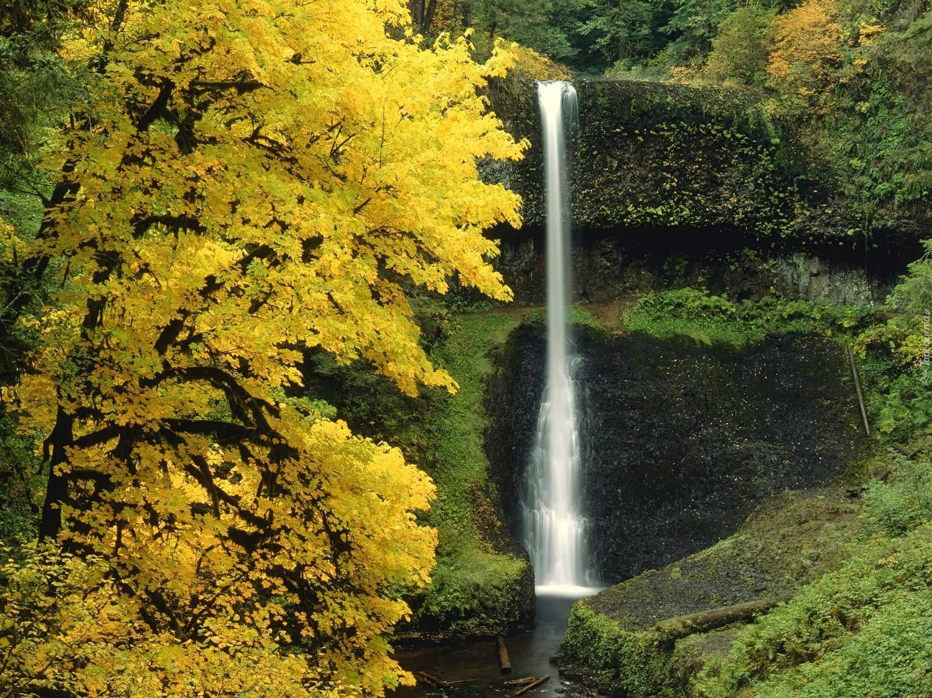Edytor tapety: Wodospad, Jesień, Skały
