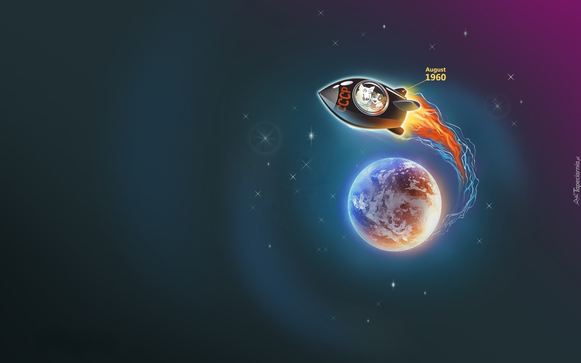 Edytor tapety: Kosmos, Rakieta, Pieski