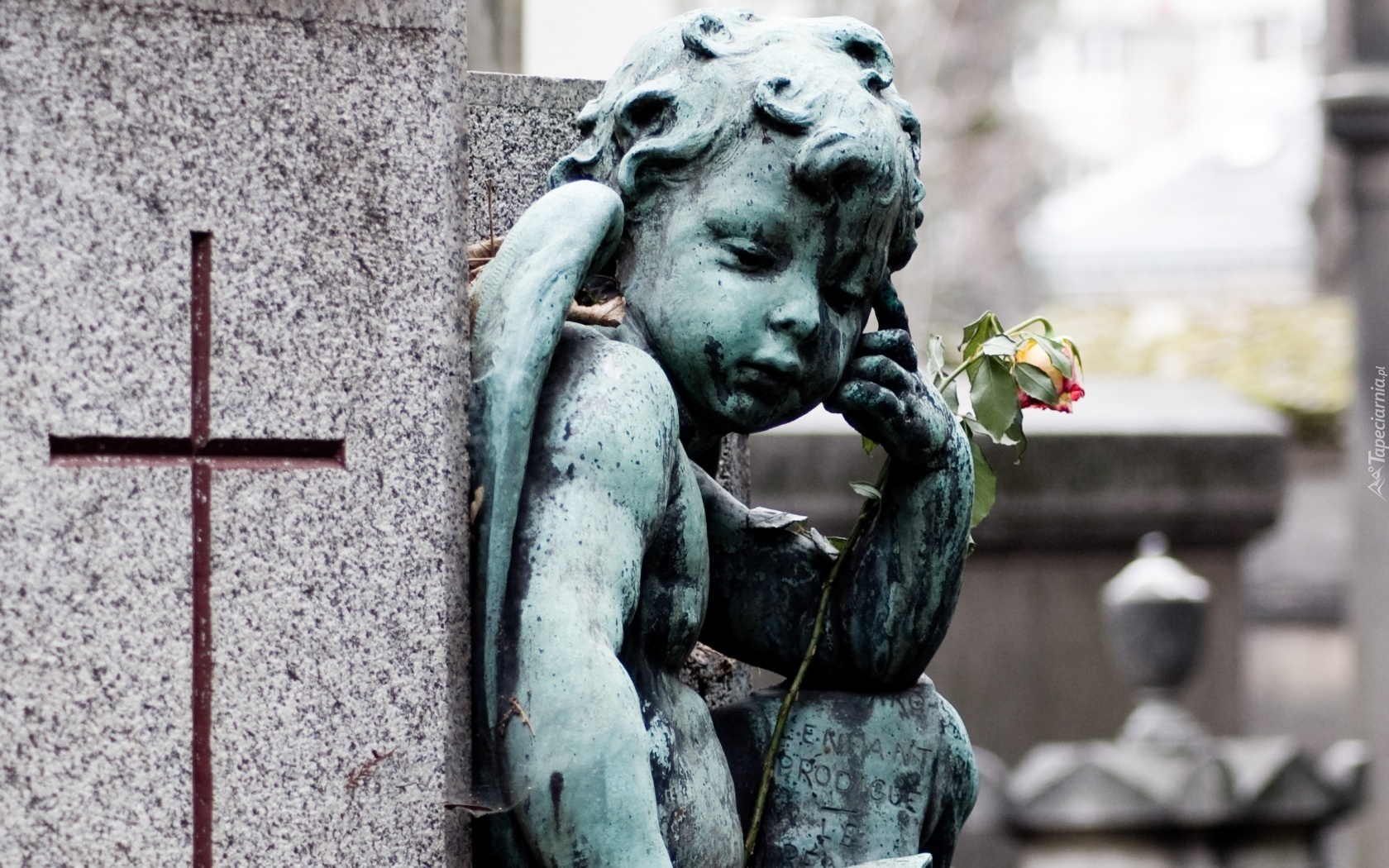 Edytor tapety: Cmentarz, Posążek, Aniołka, Róża