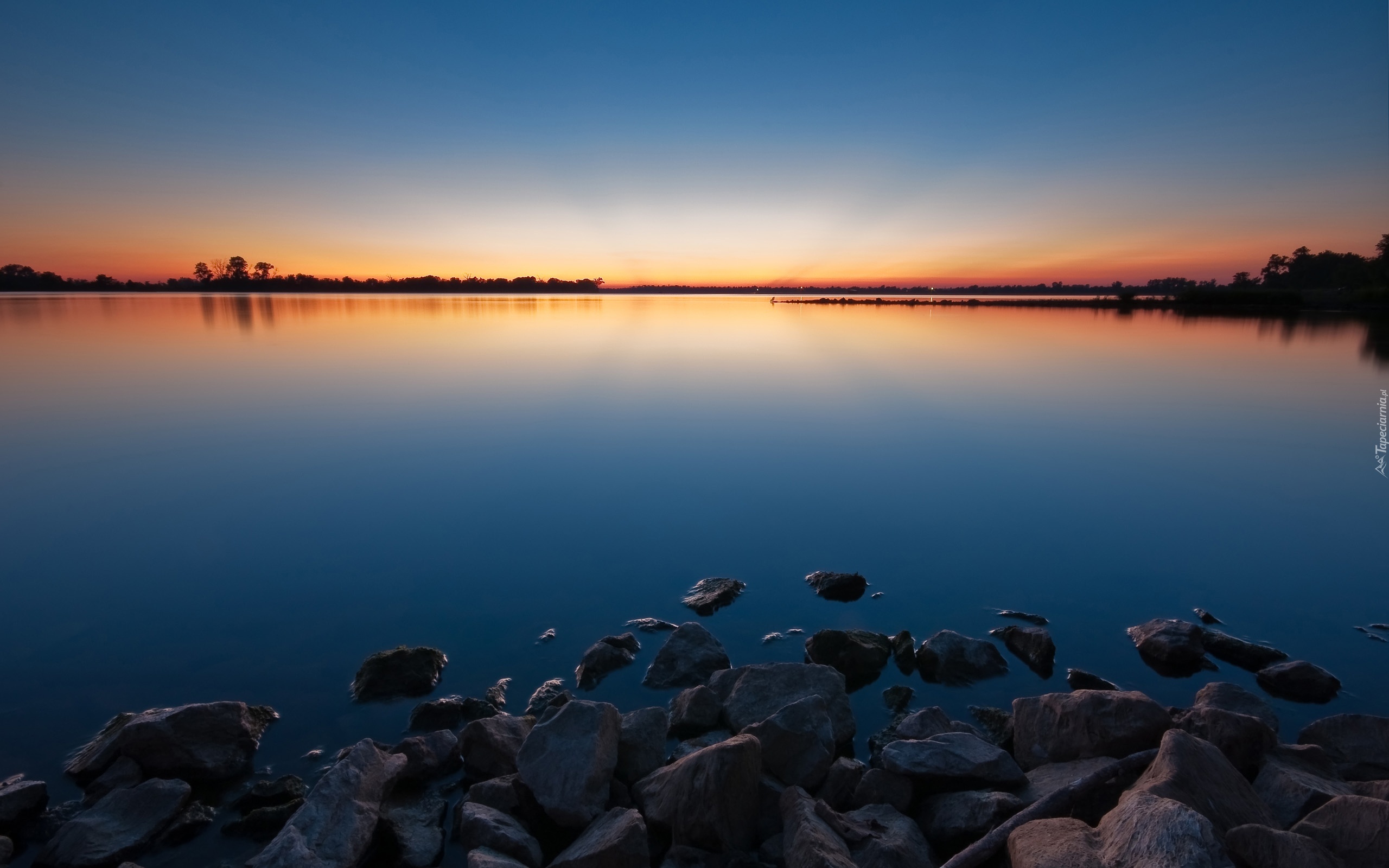Edytor tapety: Zachód, Słońca, Jezioro, Horyzont