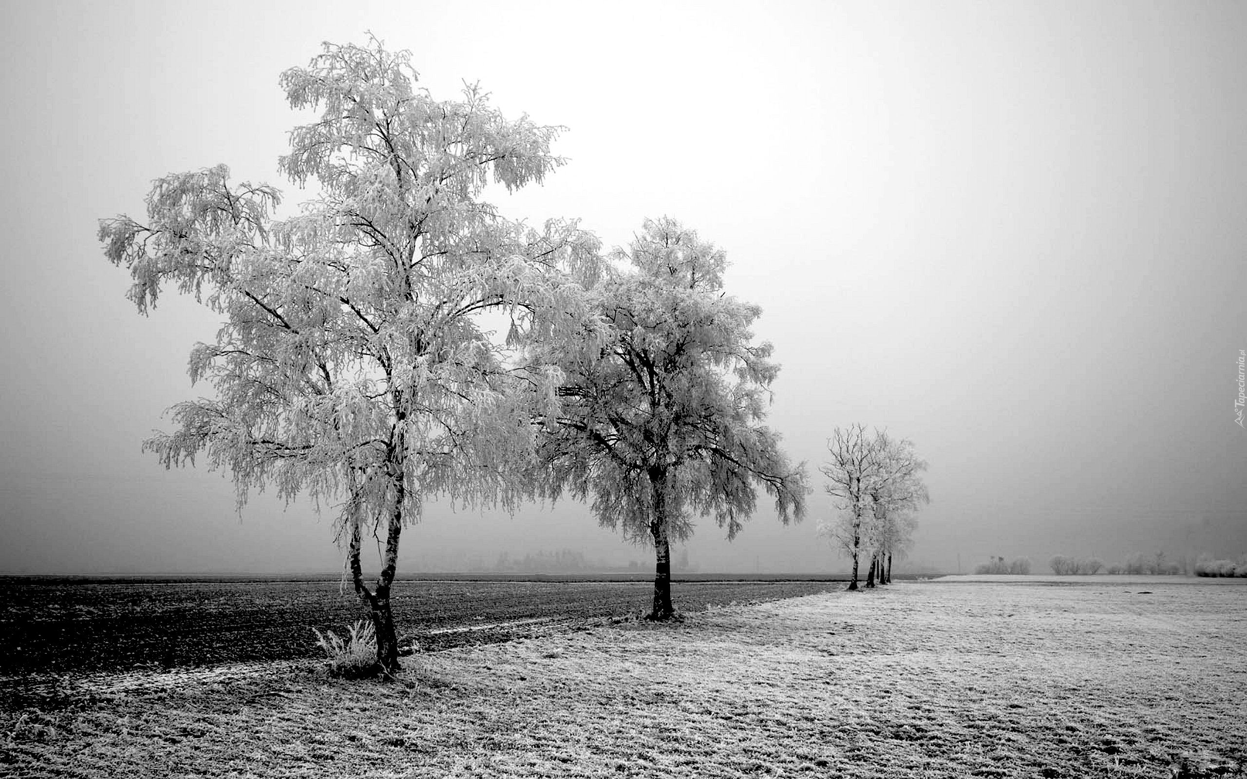 Edytor tapety: Zima, Oszronione, Drzewa, Pole