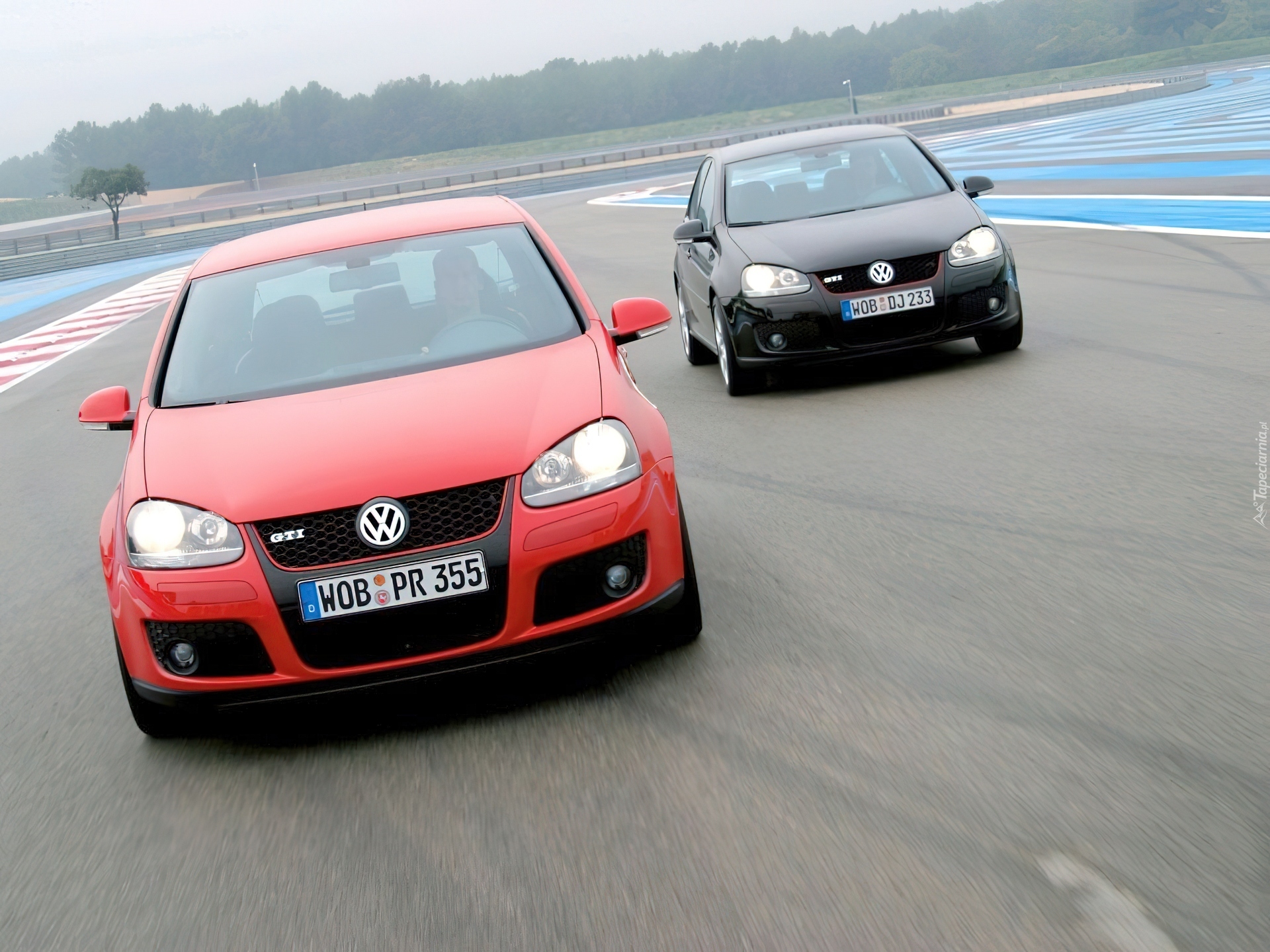 Edytor tapety: Dwa Golfy serii 5, czerwony i czarny