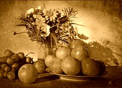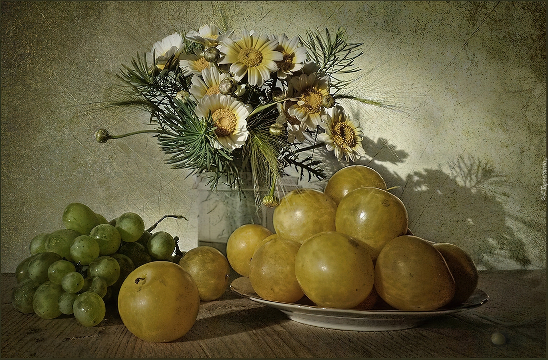 Edytor tapety: Śliwki, Winogrona, Bukiet, Kwiatów