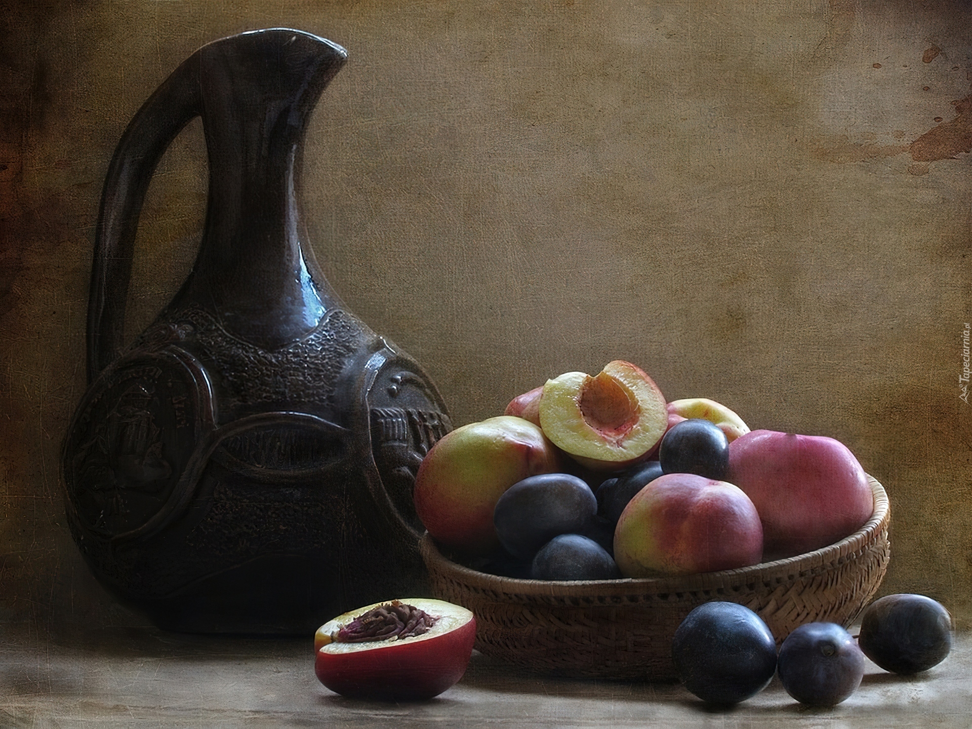 Edytor tapety: Koszyczek, Śliwek, Nektarynek, Martwa, Natura
