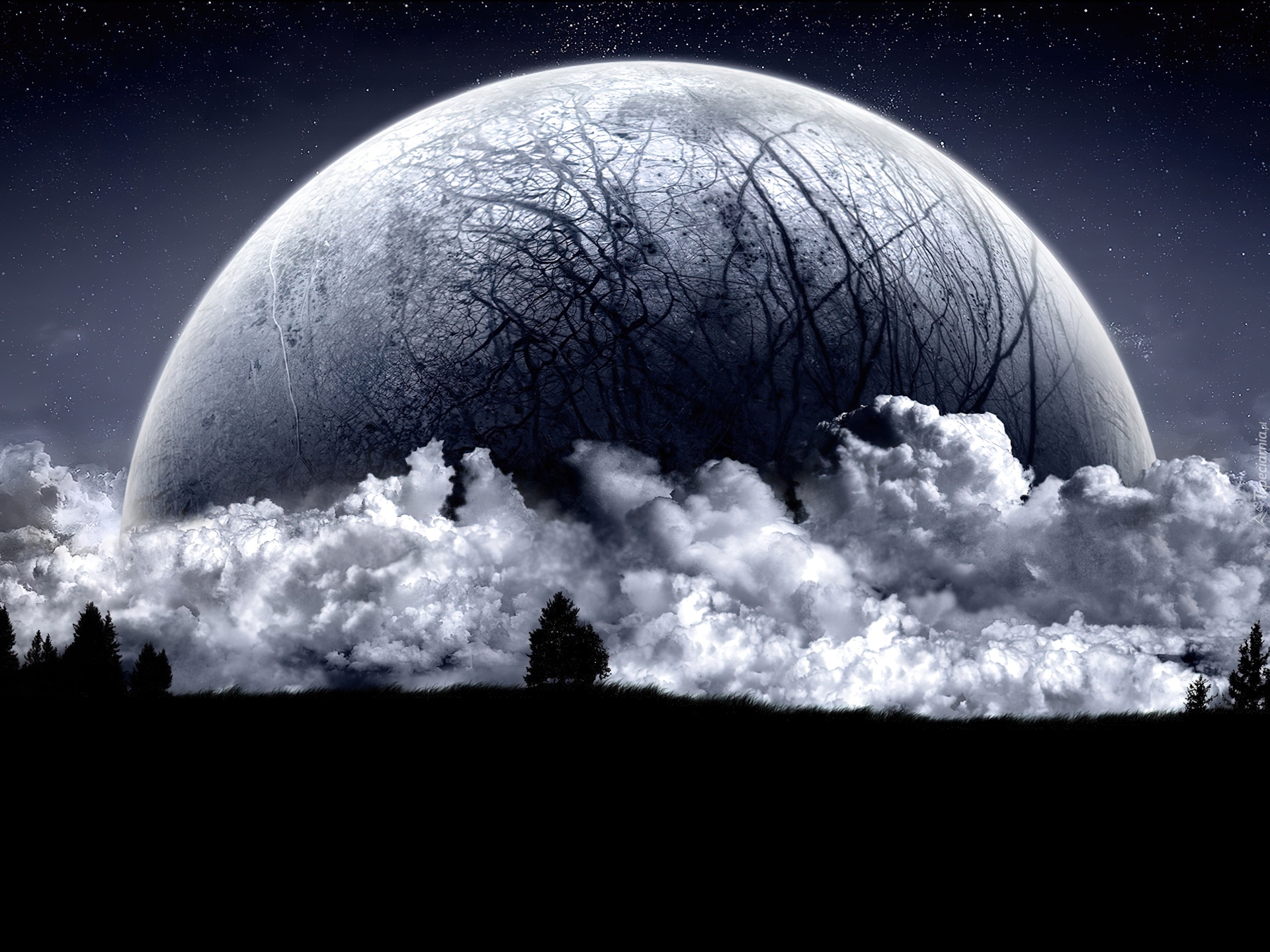 Edytor tapety: Księżyc, Chmury, Horyzont