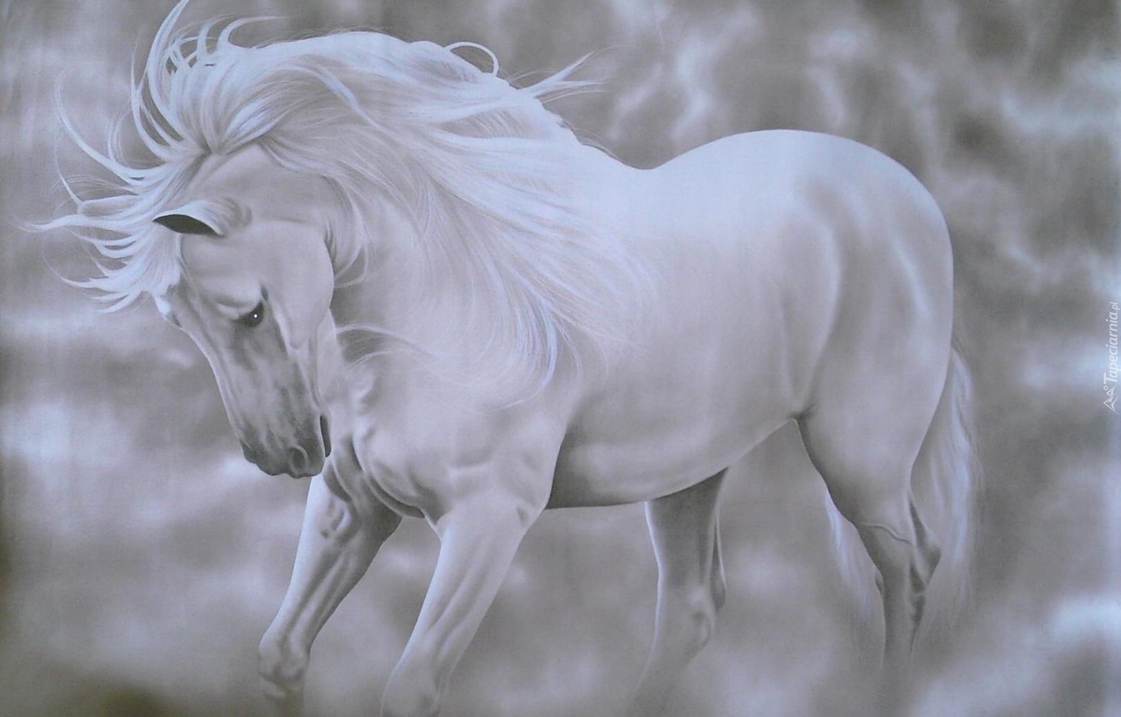 Edytor tapety: Koń, Mgła, Szarość