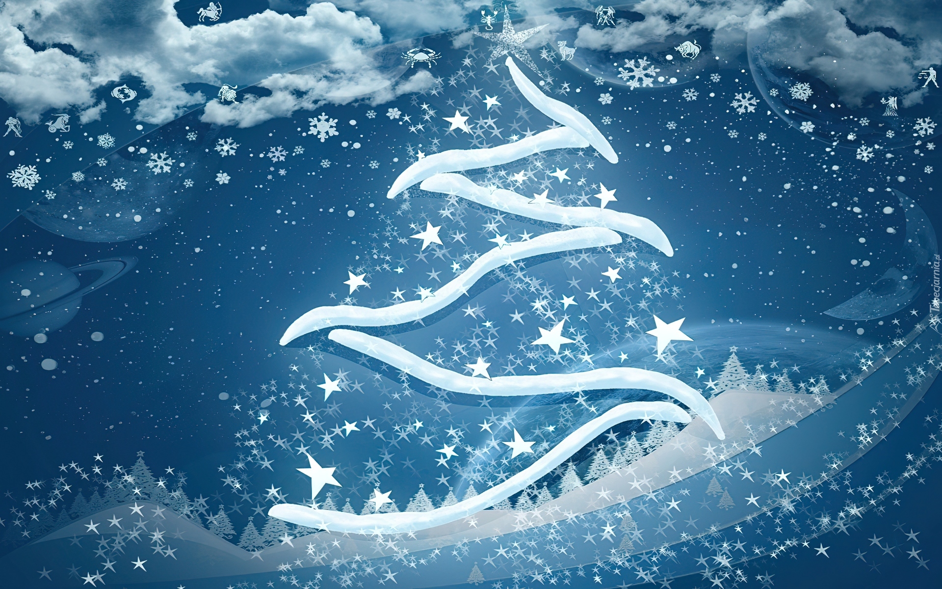 Edytor tapety: Choinka, Chmurki, Śnieg