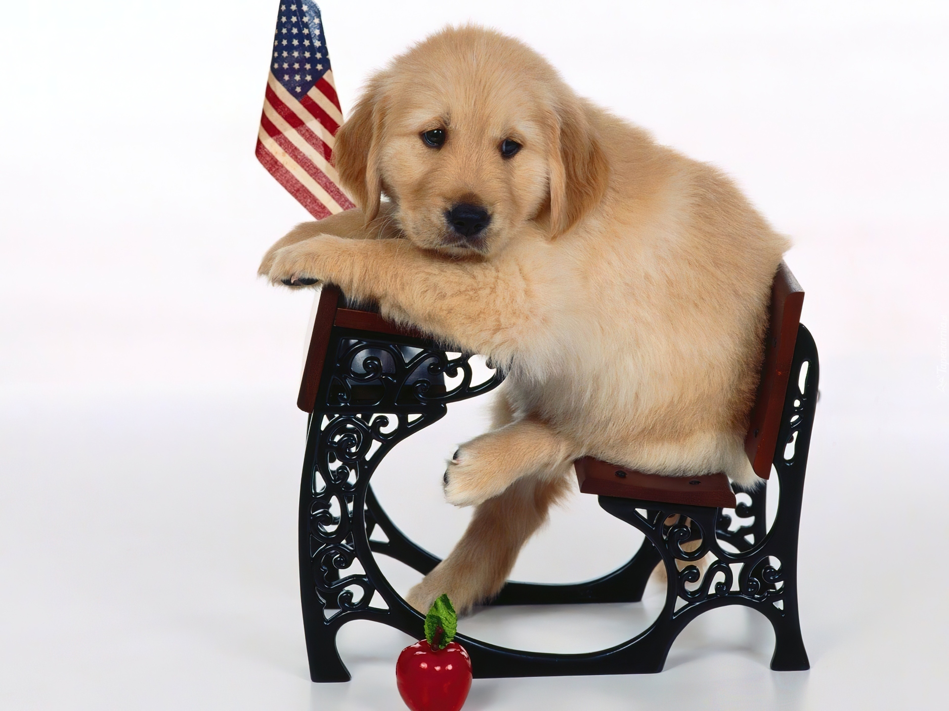 Edytor tapety: Retriever, Ławka, Flaga, USA