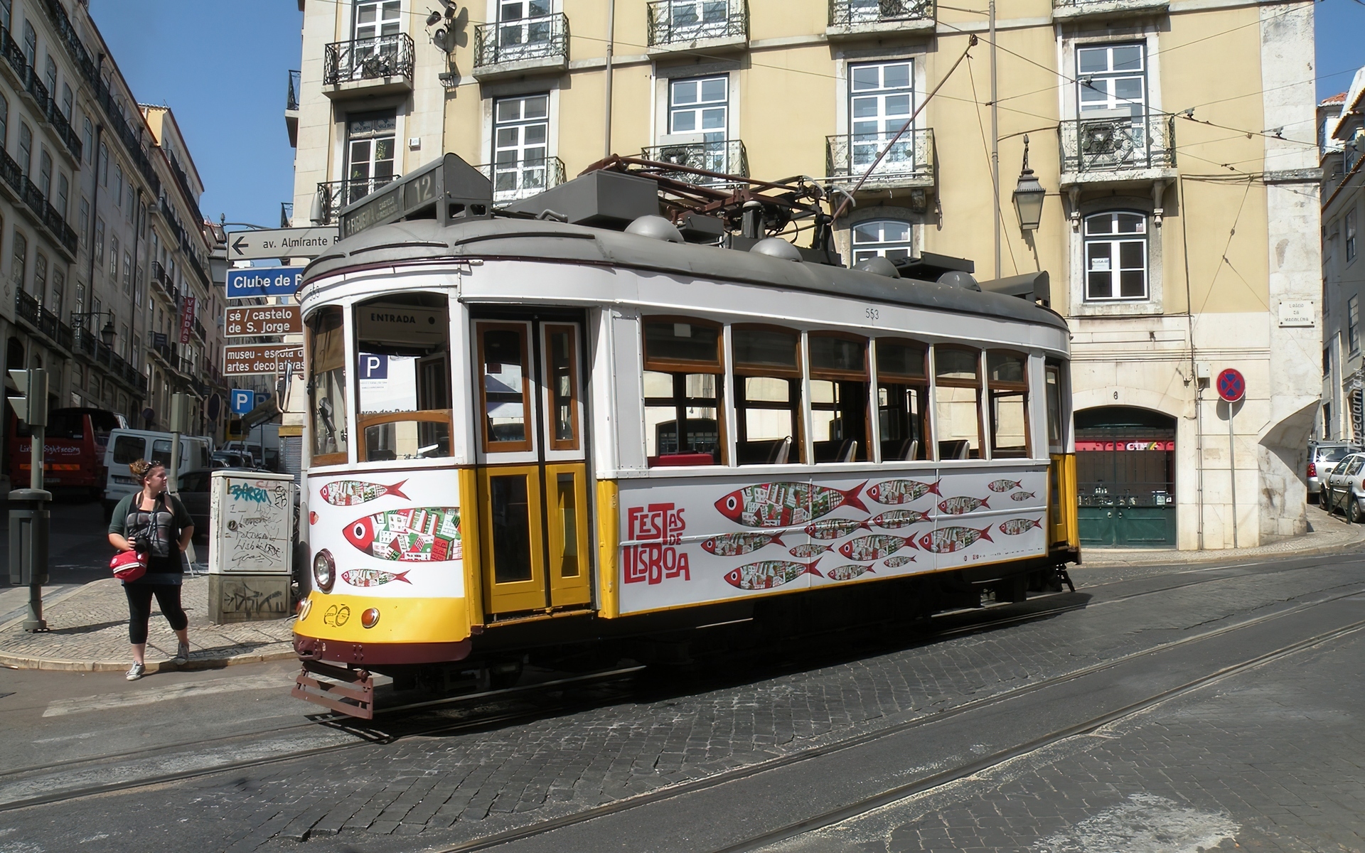 Edytor tapety: Domy, Tramwaj, Lizbona, Portugalia