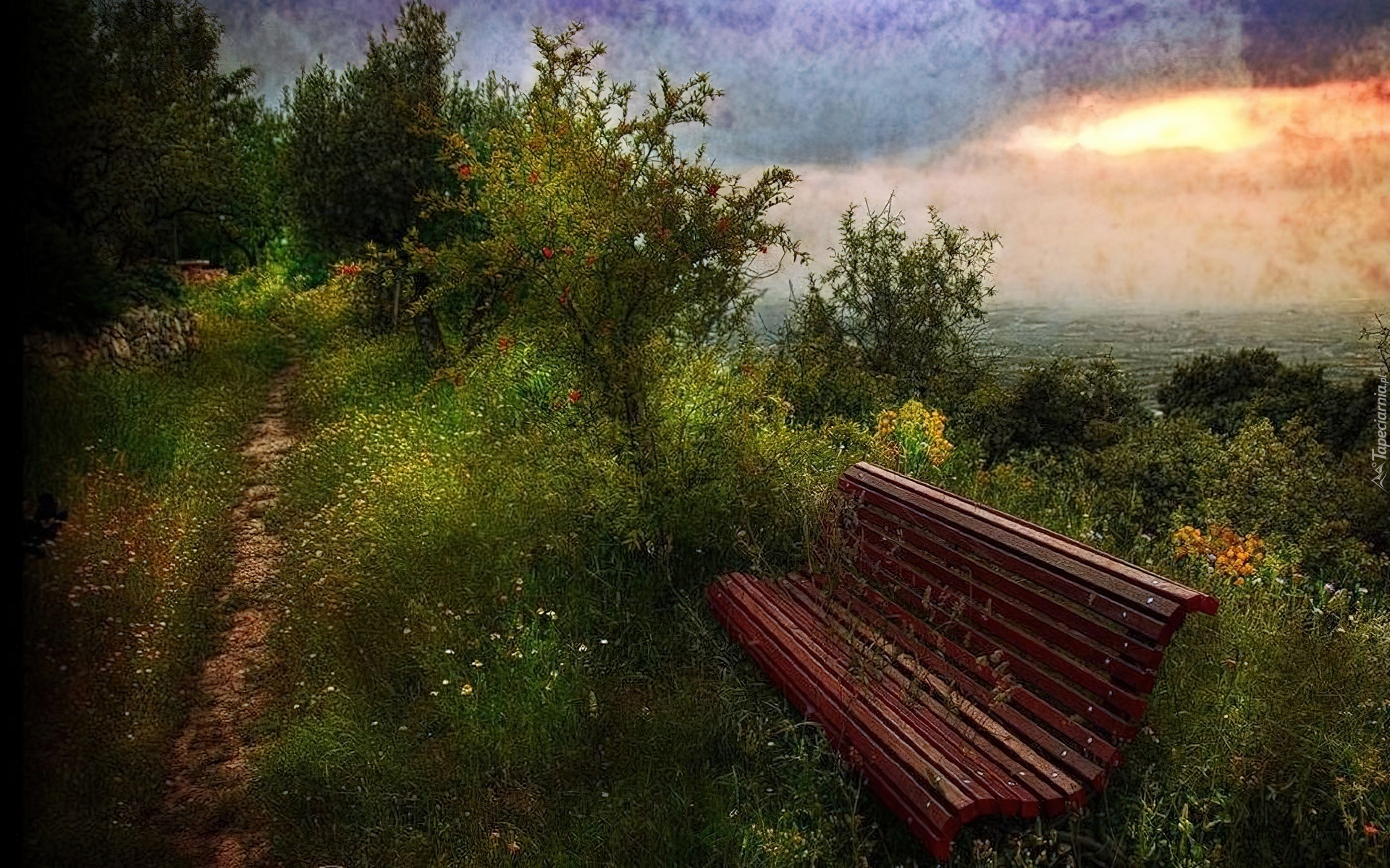Edytor tapety: Lasek, Dróżka, Ławka