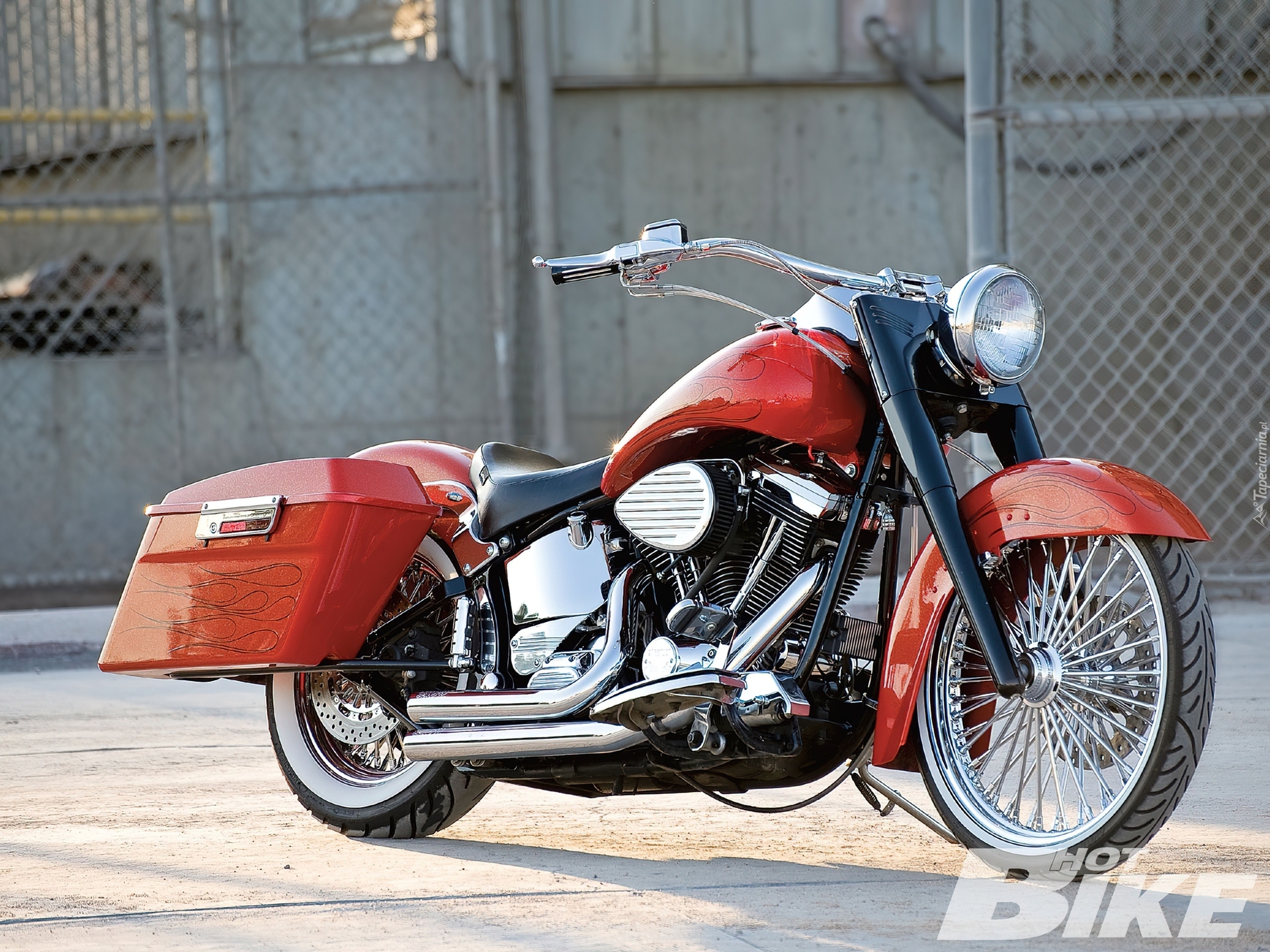 Edytor tapety: Harley Davidson Fat Boy, Kufry, Boczne