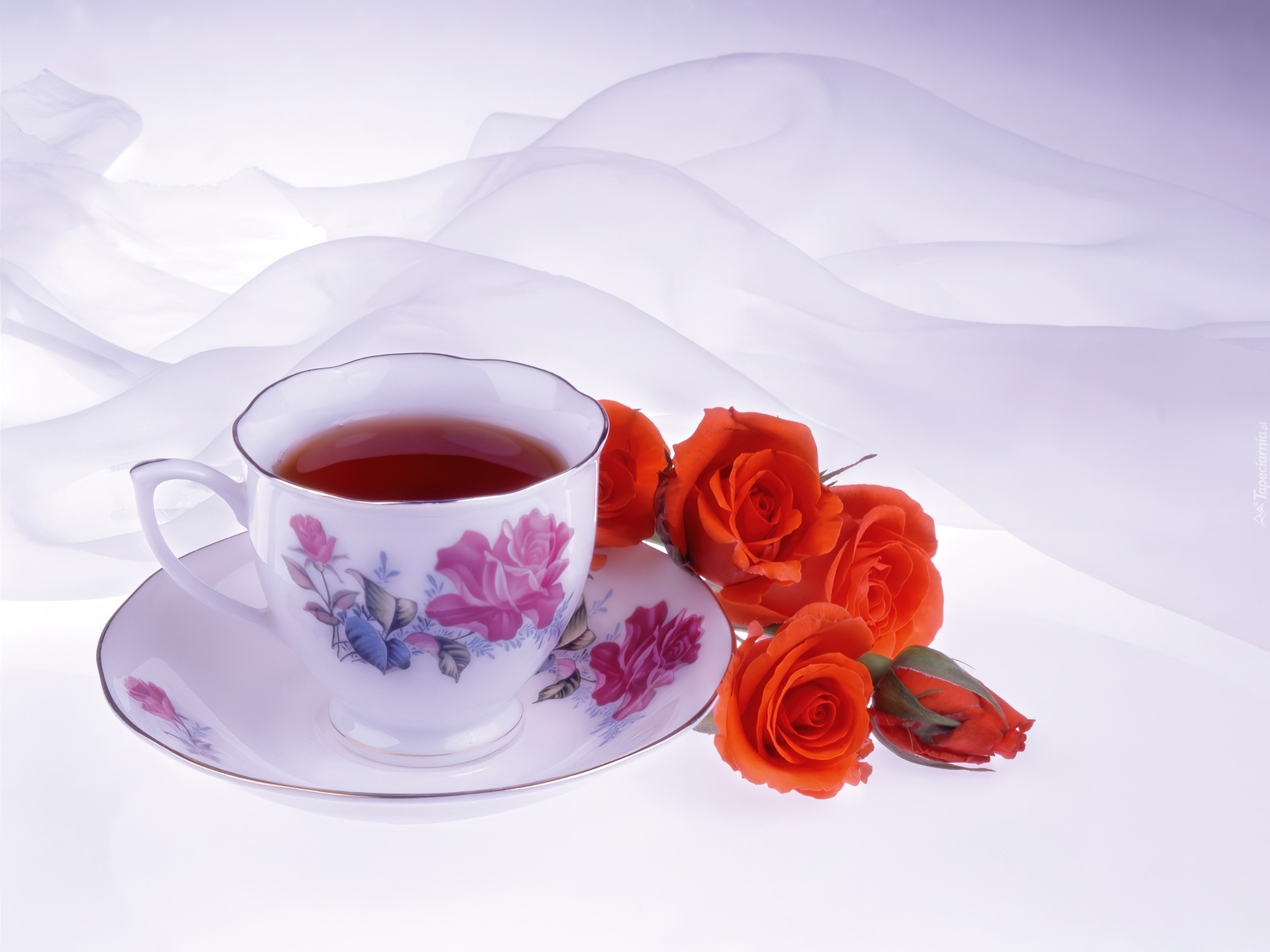 Edytor tapety: Filiżanka, Herbata, Róże
