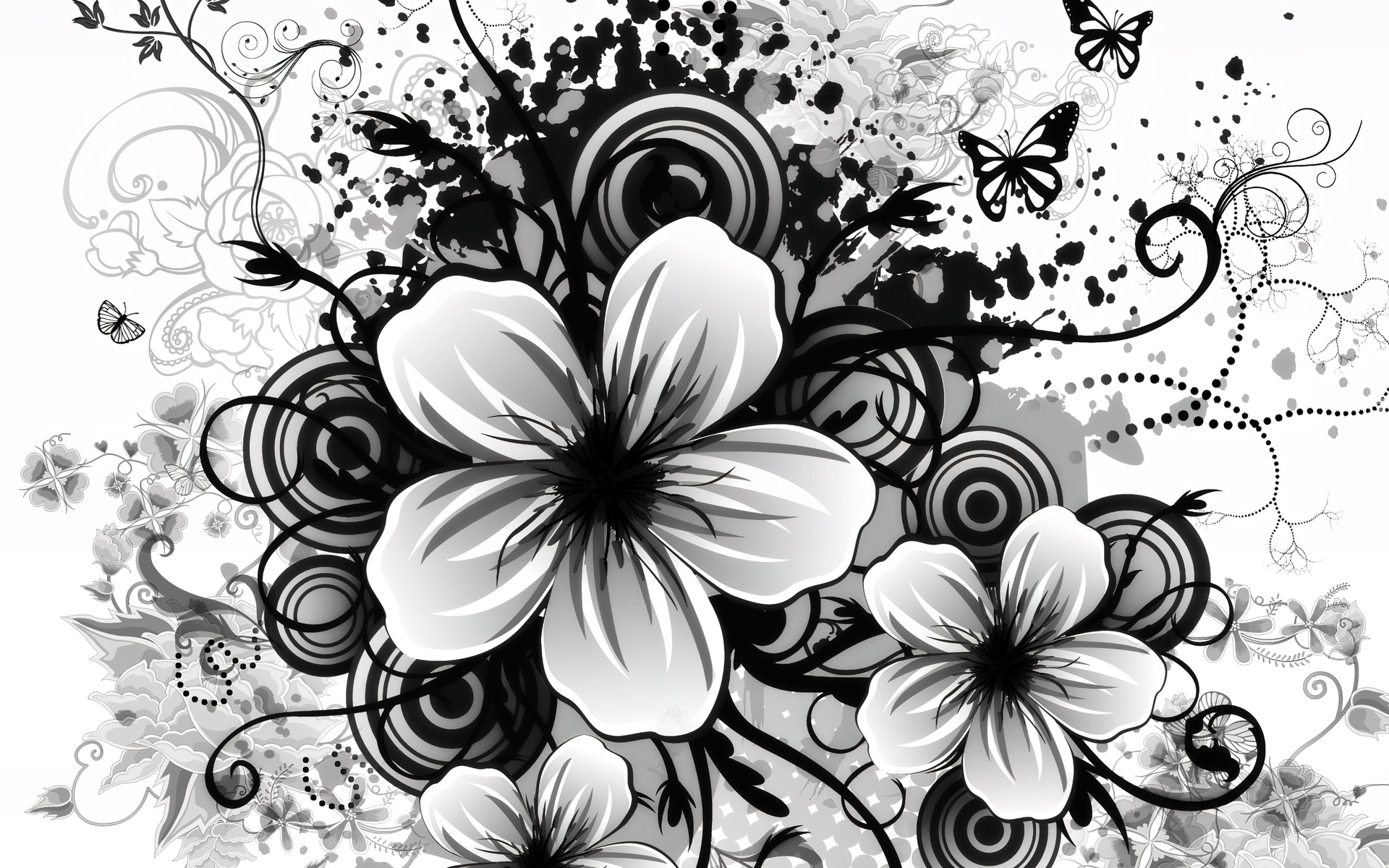 Edytor tapety: Czarno, Białe, Kwiaty