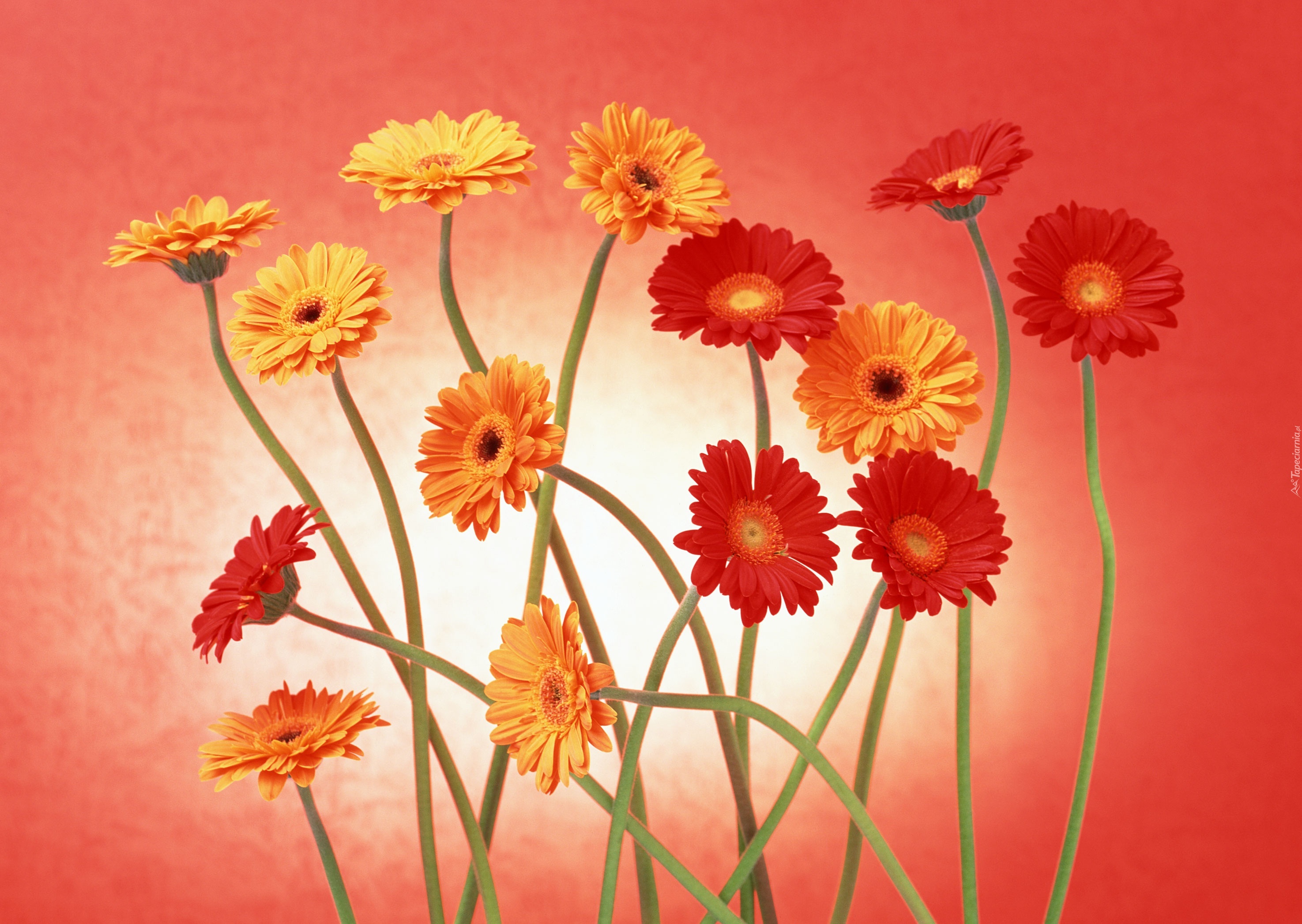 Edytor tapety: Żółto, Czerwone, Gerbery, Łodygi