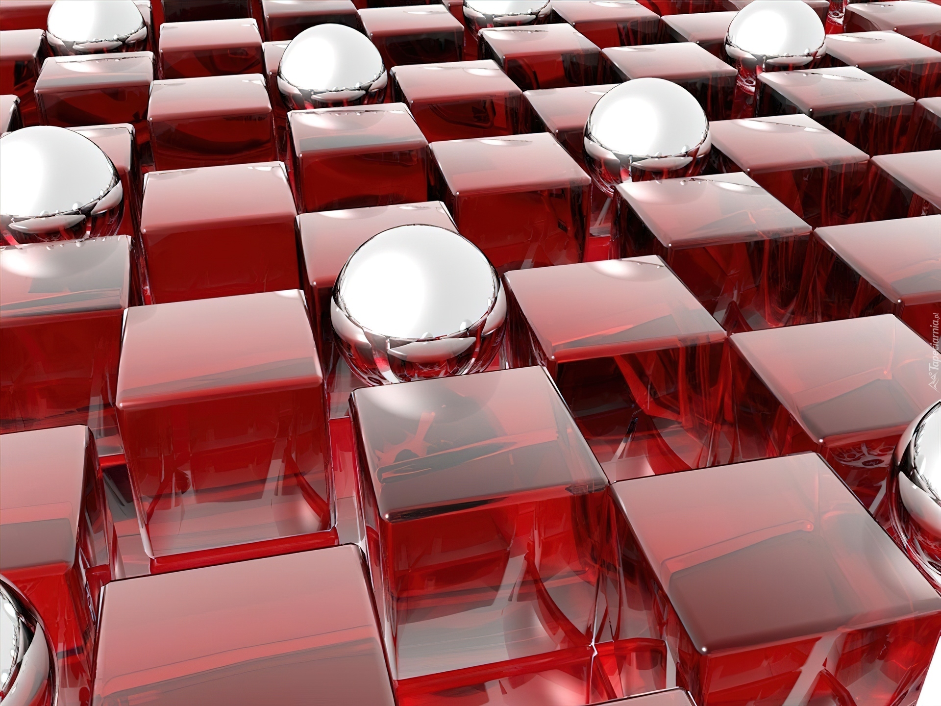 Edytor tapety: Szklane, Czerwone, Kwadraty, Metalowe, Kule
