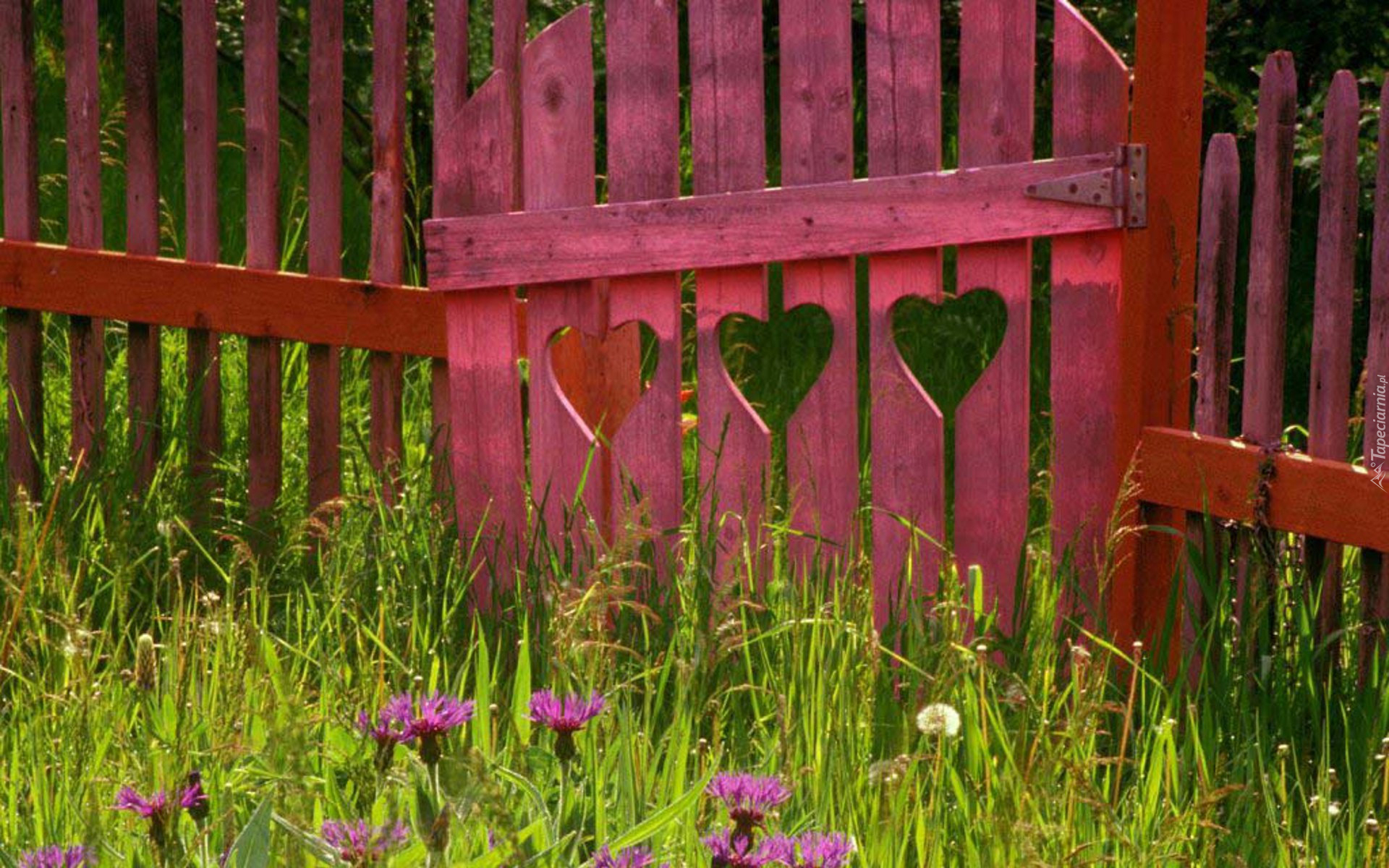 Edytor tapety: Płot, Serduszka, Kwiaty