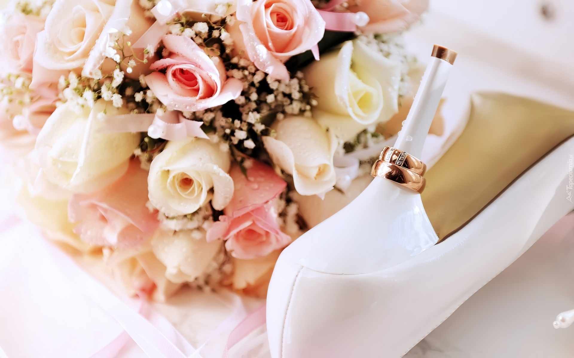 Edytor tapety: Bukiet, Róż, Szpilki, Obrączki
