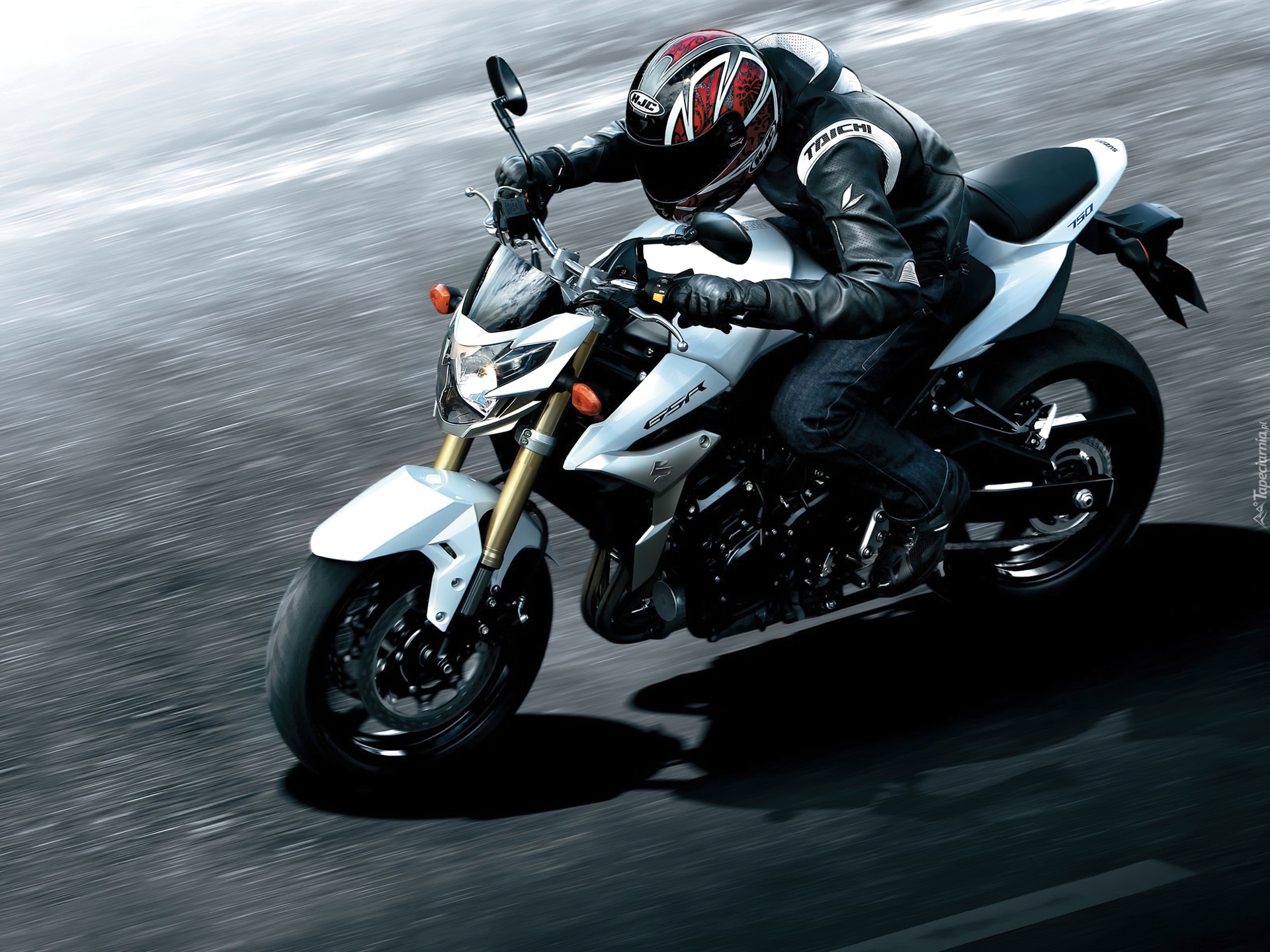 Edytor tapety: Biały, Suzuki GSR750, Kask, HJC