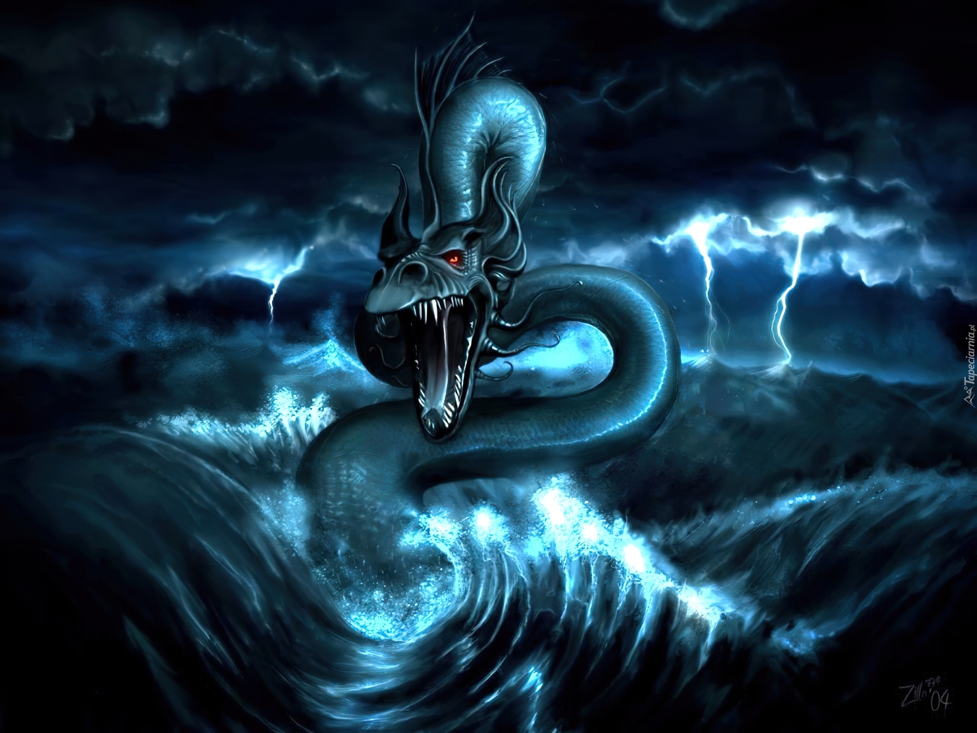 Edytor tapety: Niebieski, Smok, Morze
