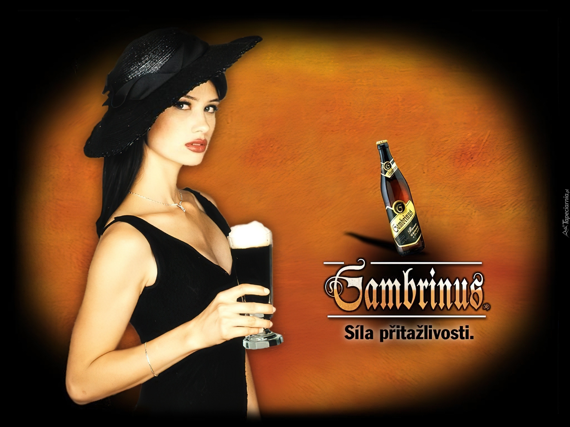 Edytor tapety: Piwo Gambrinus, Piekna Dama, czarna Sukienka